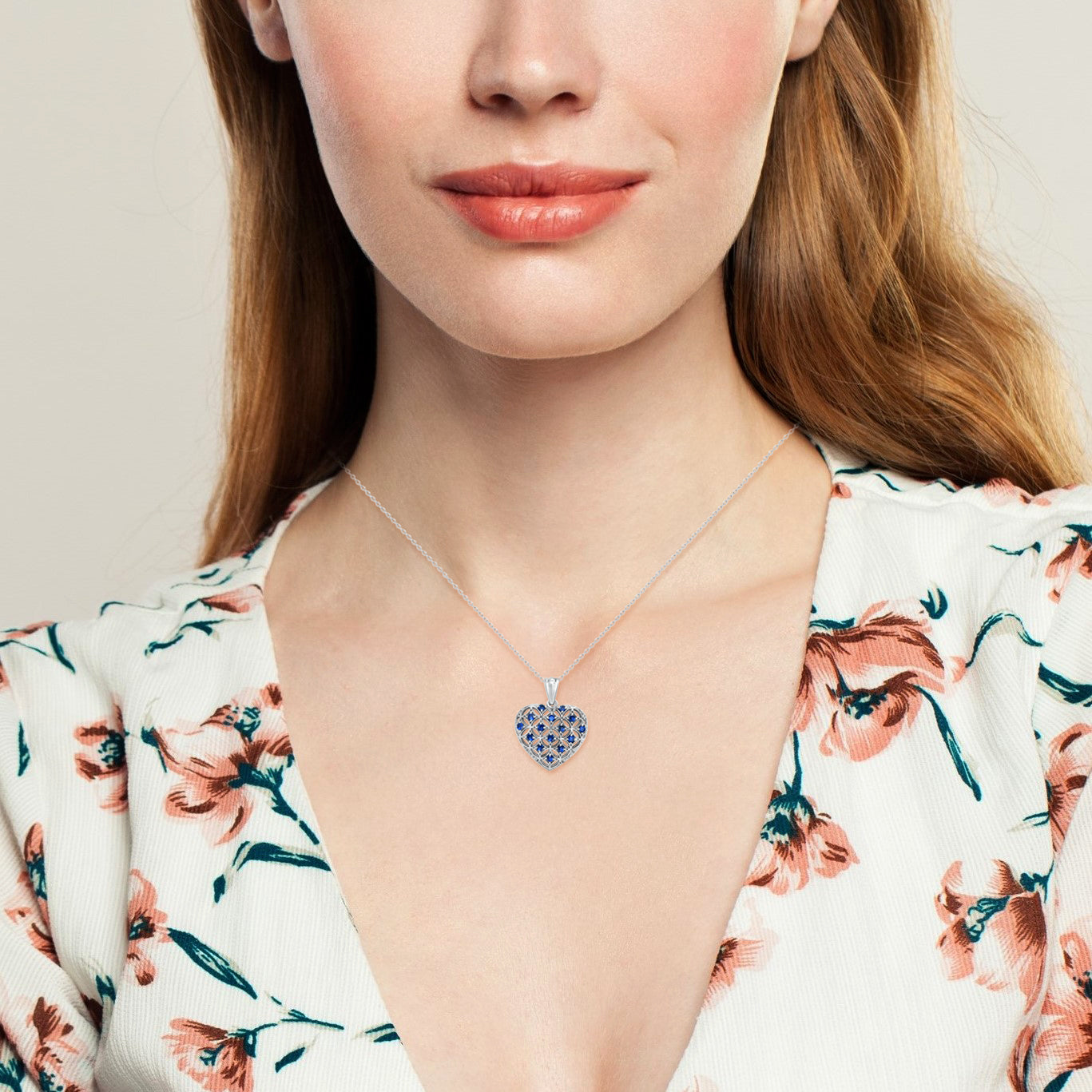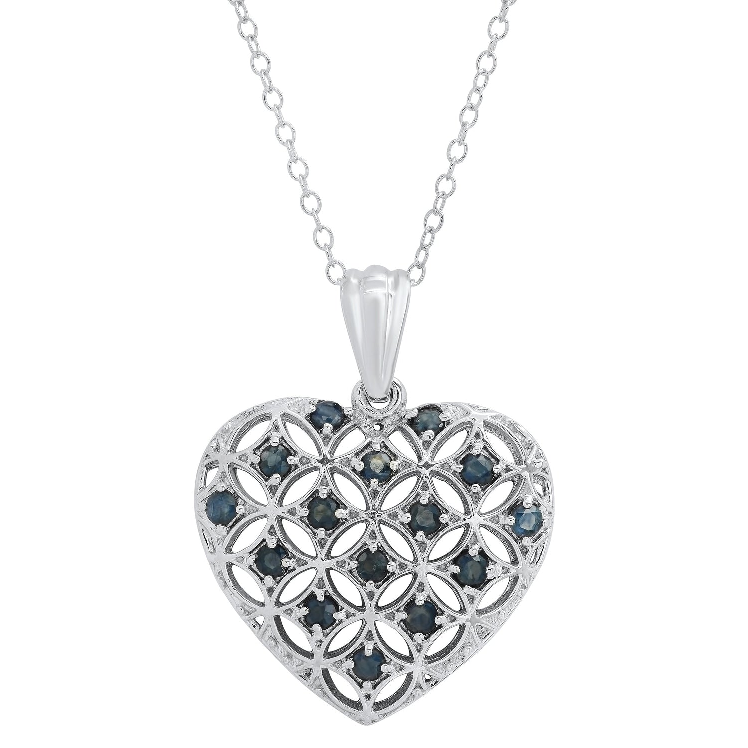 This Sterling Silver Genuine Gemstone Heart Shape Filigree Pendant Necklace by MaxColor is an exquisite piece that effortlessly blends charm and sophistication. The heart-shaped pendant is crafted from sterling silver, adorned with 2mm gemstones, including sapphires, offering a delicate and romantic aesthetic. The 18-inch cable chain ensures a perfect fit for everyday or special occasions.