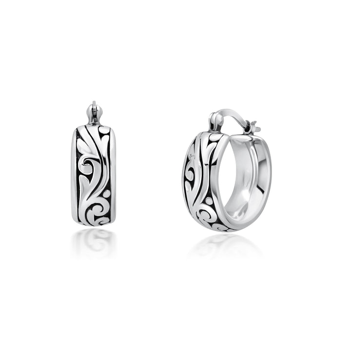 Sterling Silver Round Waved Filigree Hoop Earrings