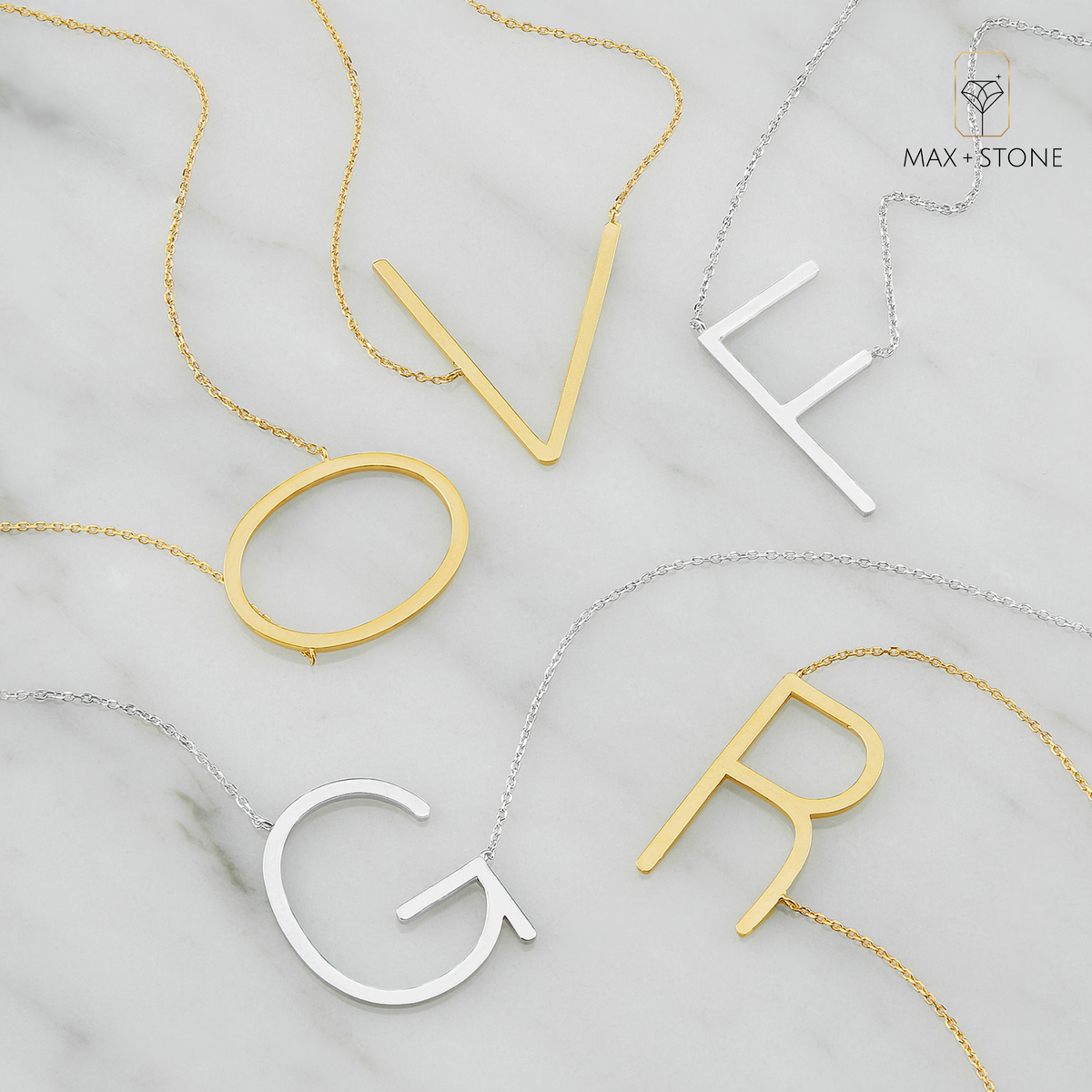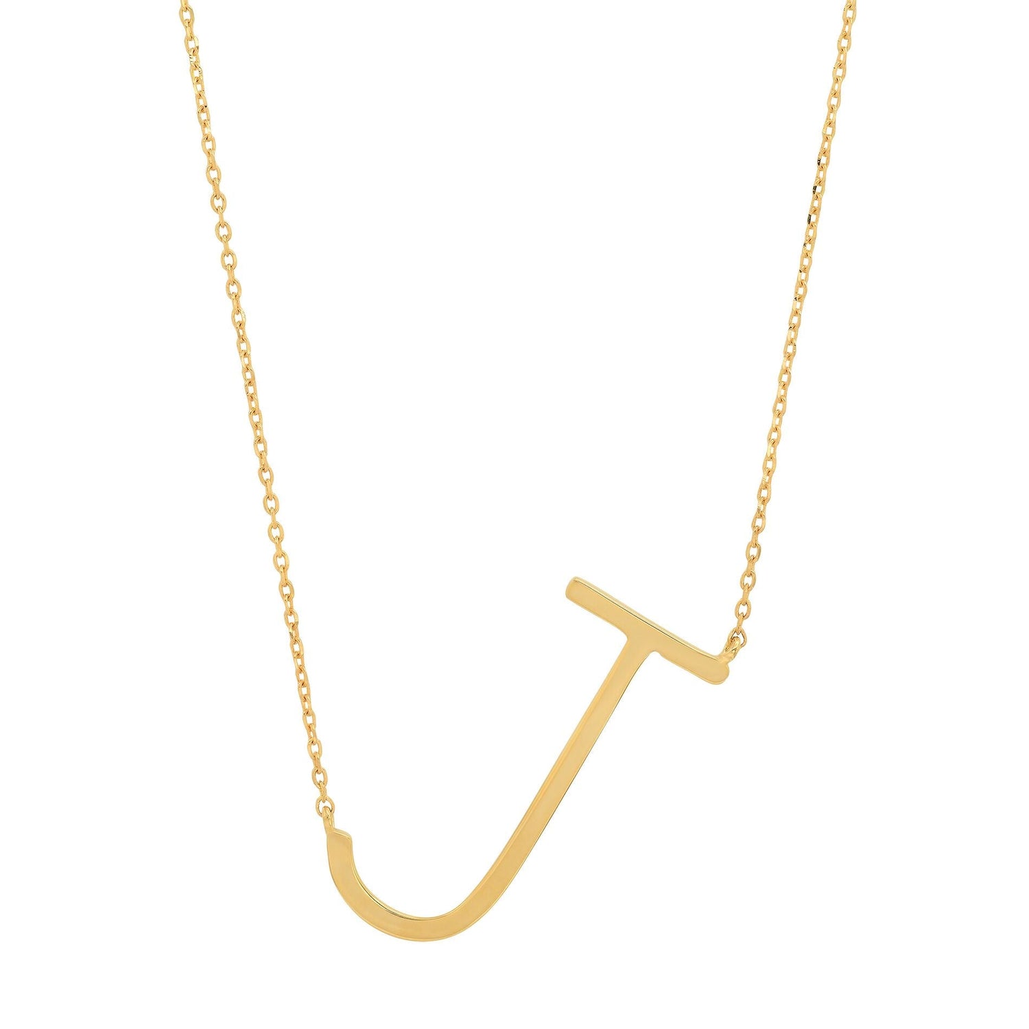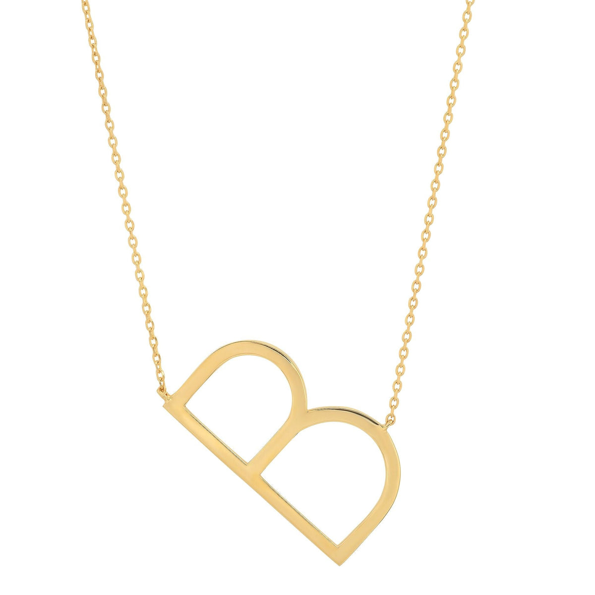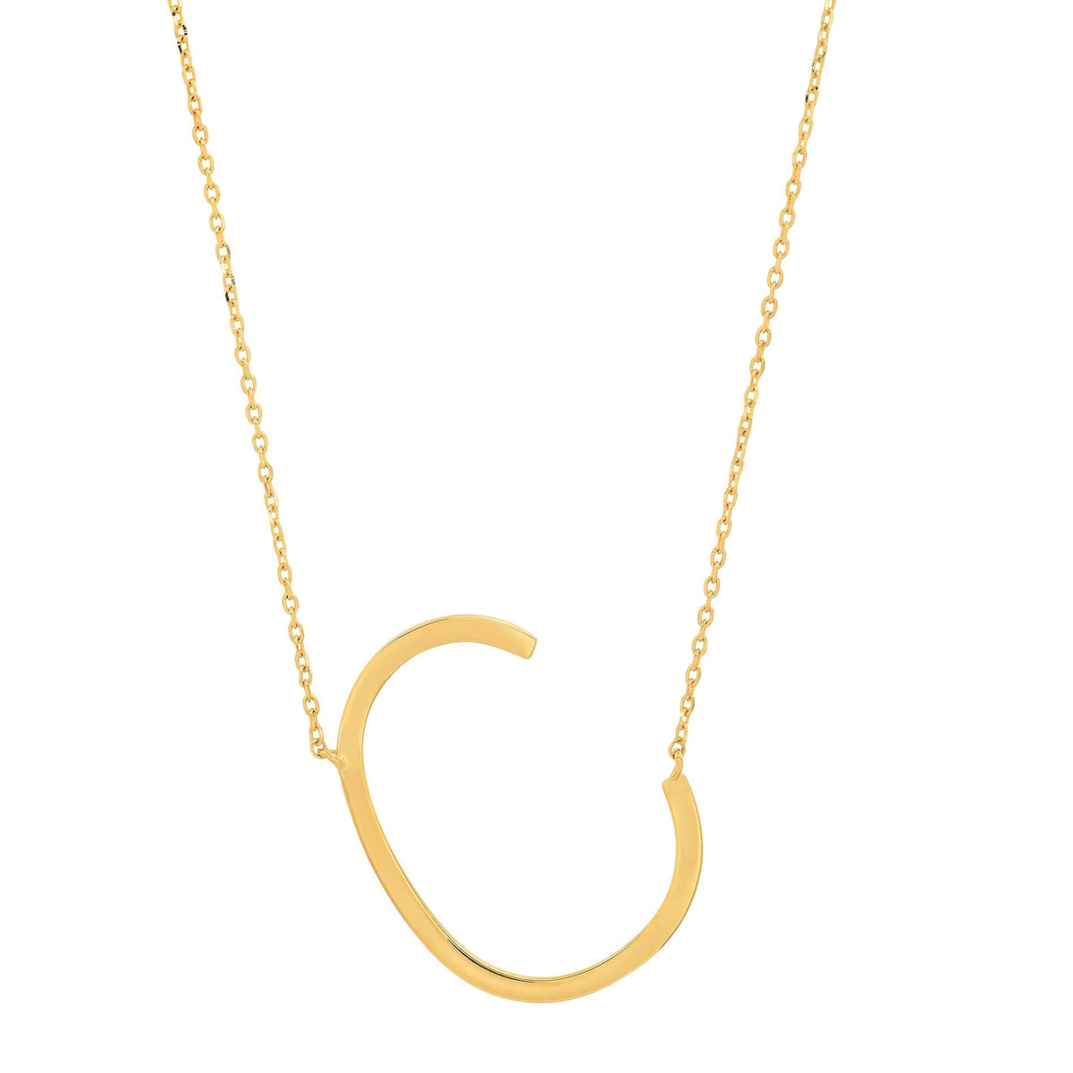 This 10k solid yellow gold large sideways block letter initial necklace by MaxColor is a sophisticated and stylish accessory. Featuring a bold letter initial pendant, it is suspended from an extendable cable chain that adjusts from 16 to 18 inches. Ideal for both casual and formal occasions, this piece makes a personalized statement that adds elegance to any outfit.