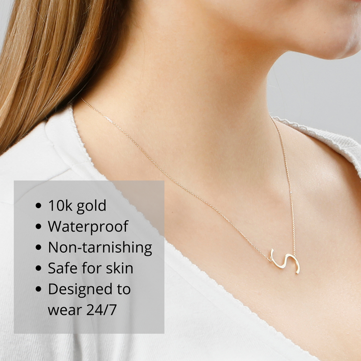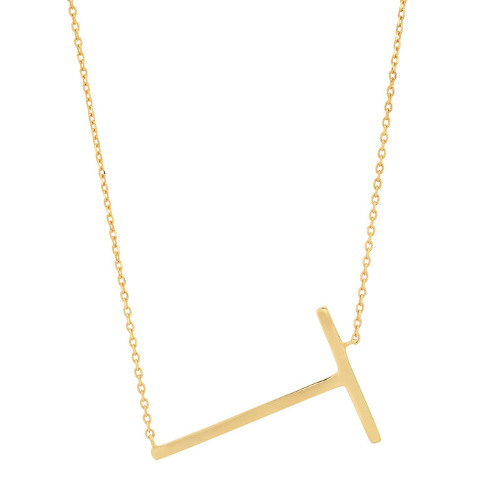 10k Solid Yellow Gold Large Sideways Block Letter Initial with Extendable Cable Chain, 16 to 18 inches