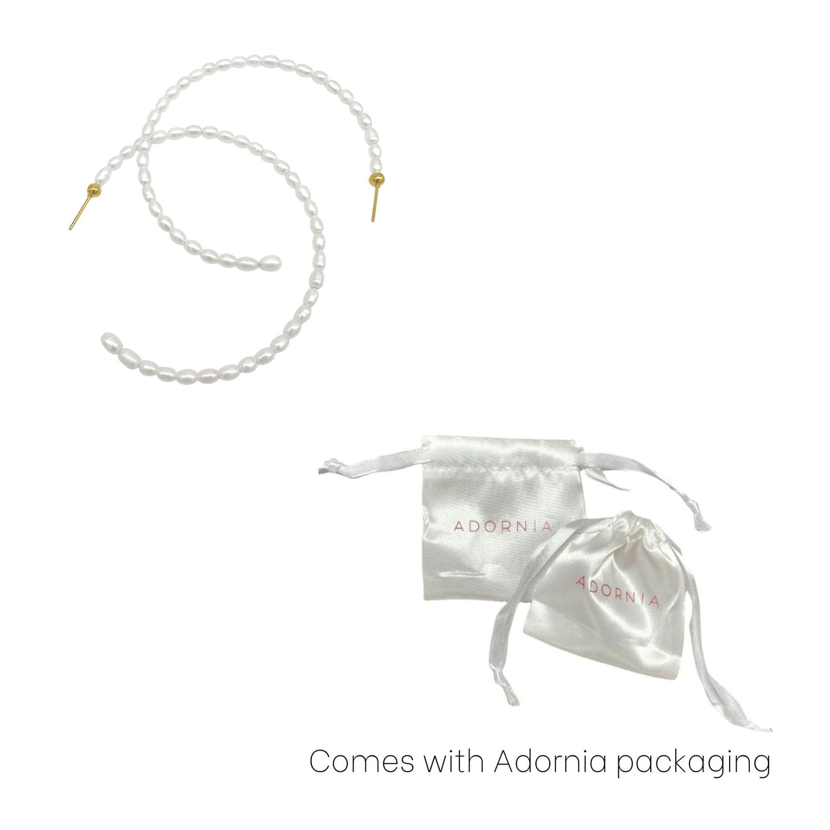 These Seed Pearl Hoops by Adornia combine elegance and modern simplicity. The delicate seed pearls are perfectly placed along the hoop, creating a refined and sophisticated look. Their understated beauty makes them versatile, easily transitioning from casual to formal styles, while adding a touch of feminine charm to any ensemble.