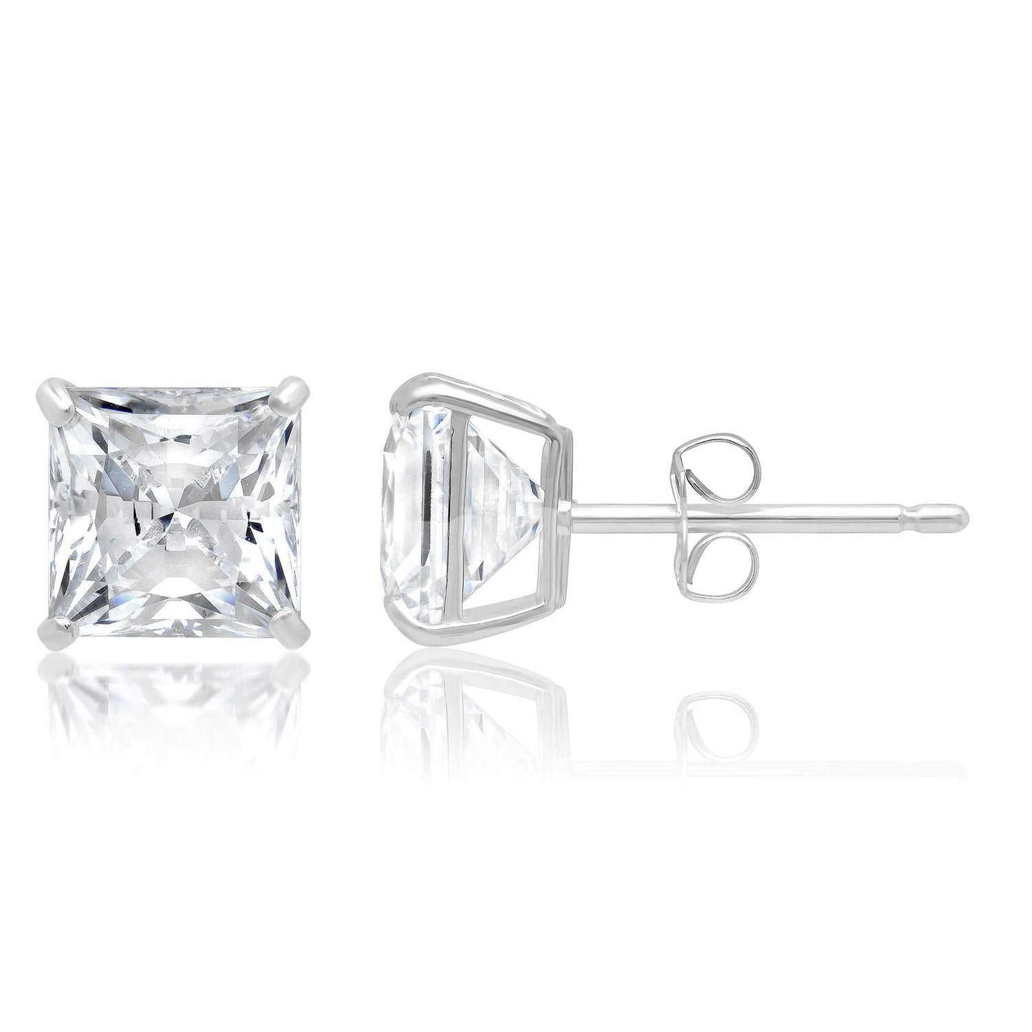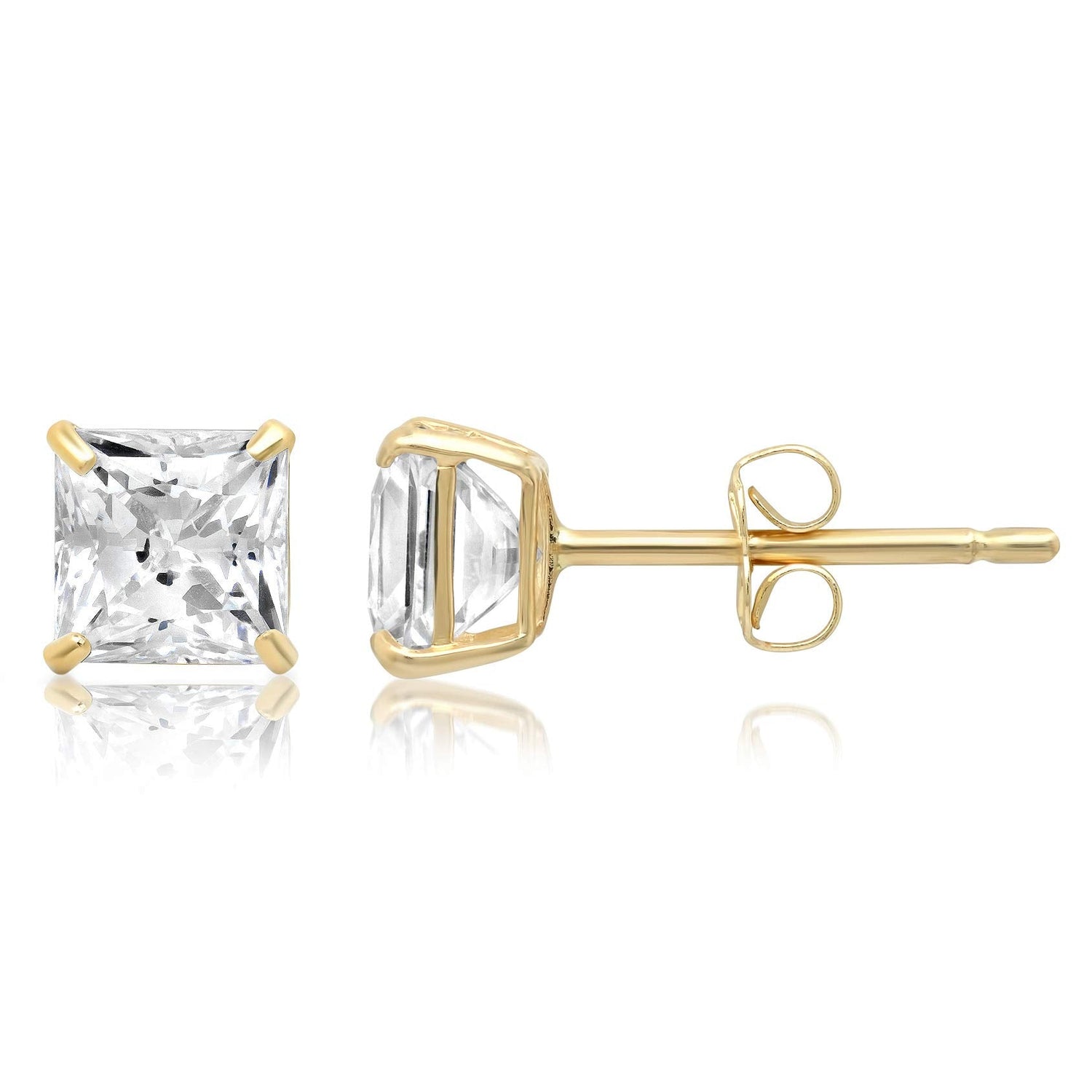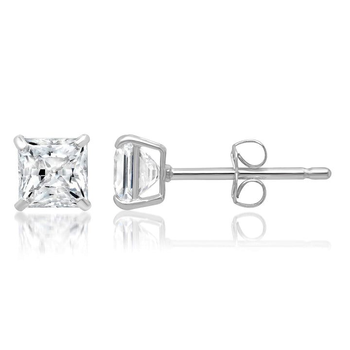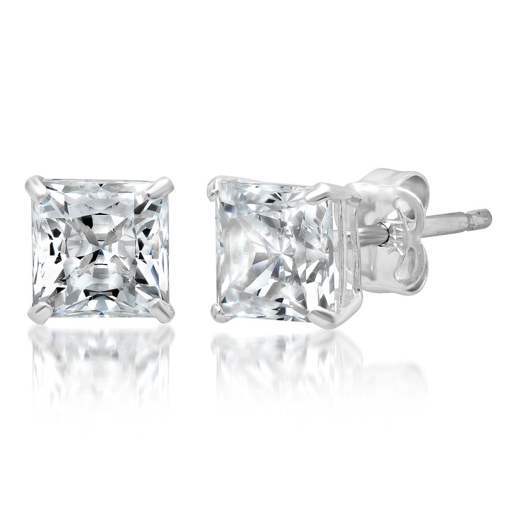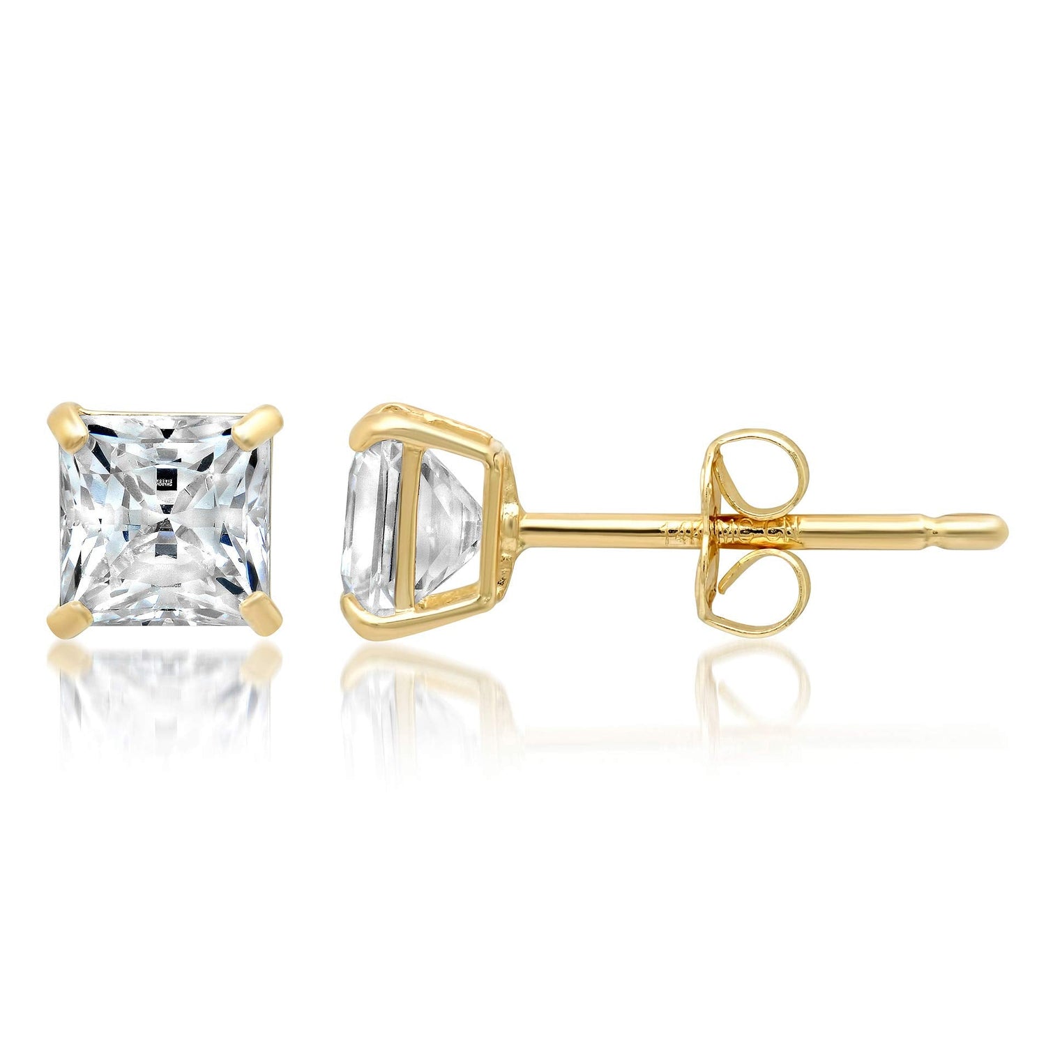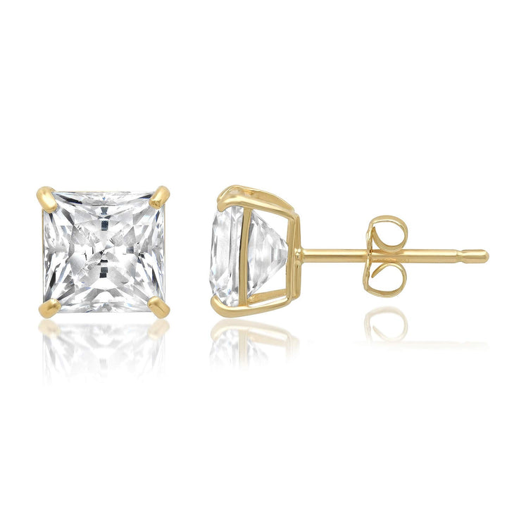 14k Solid Gold Princess Cut Stud Earrings with Genuine Swarovski Zirconia