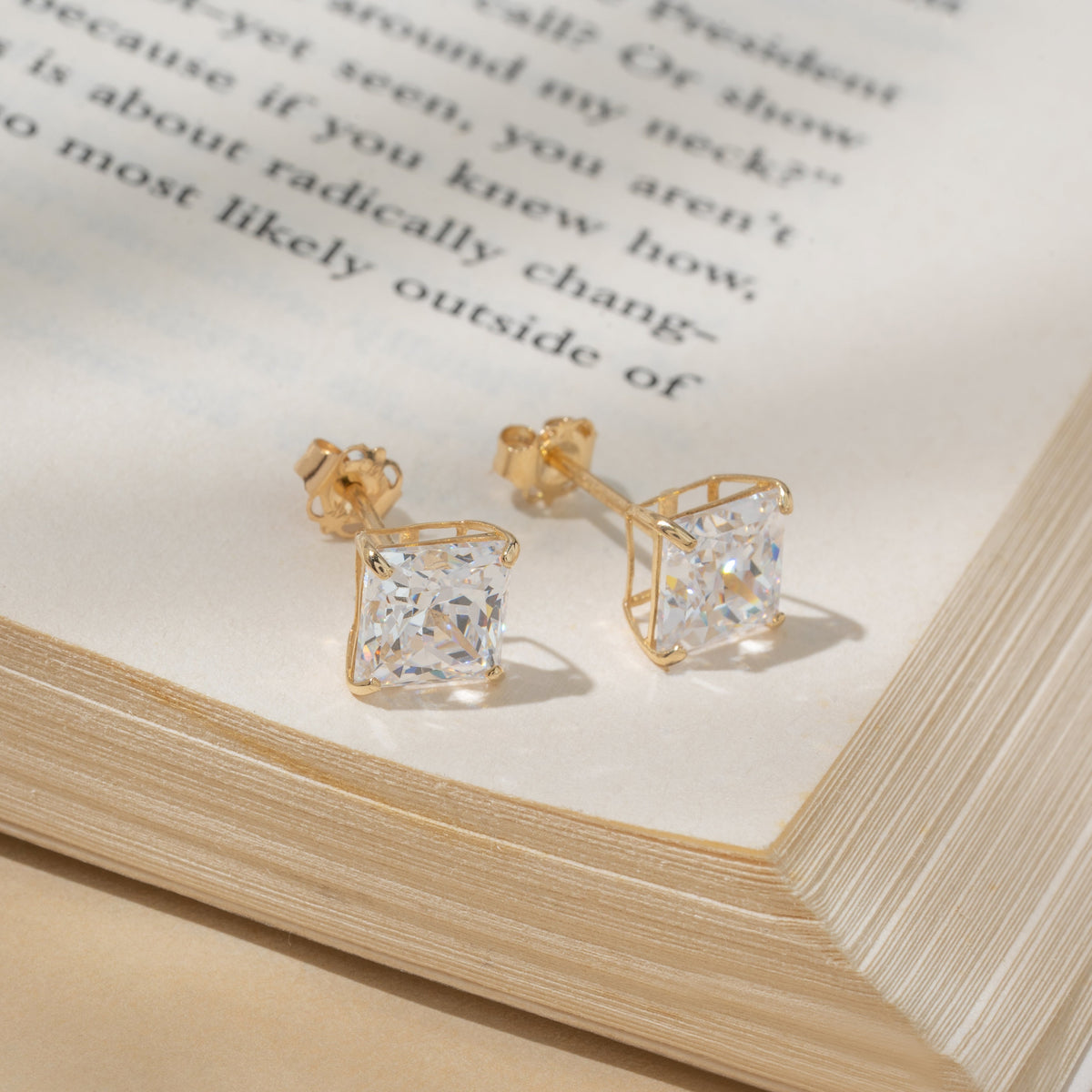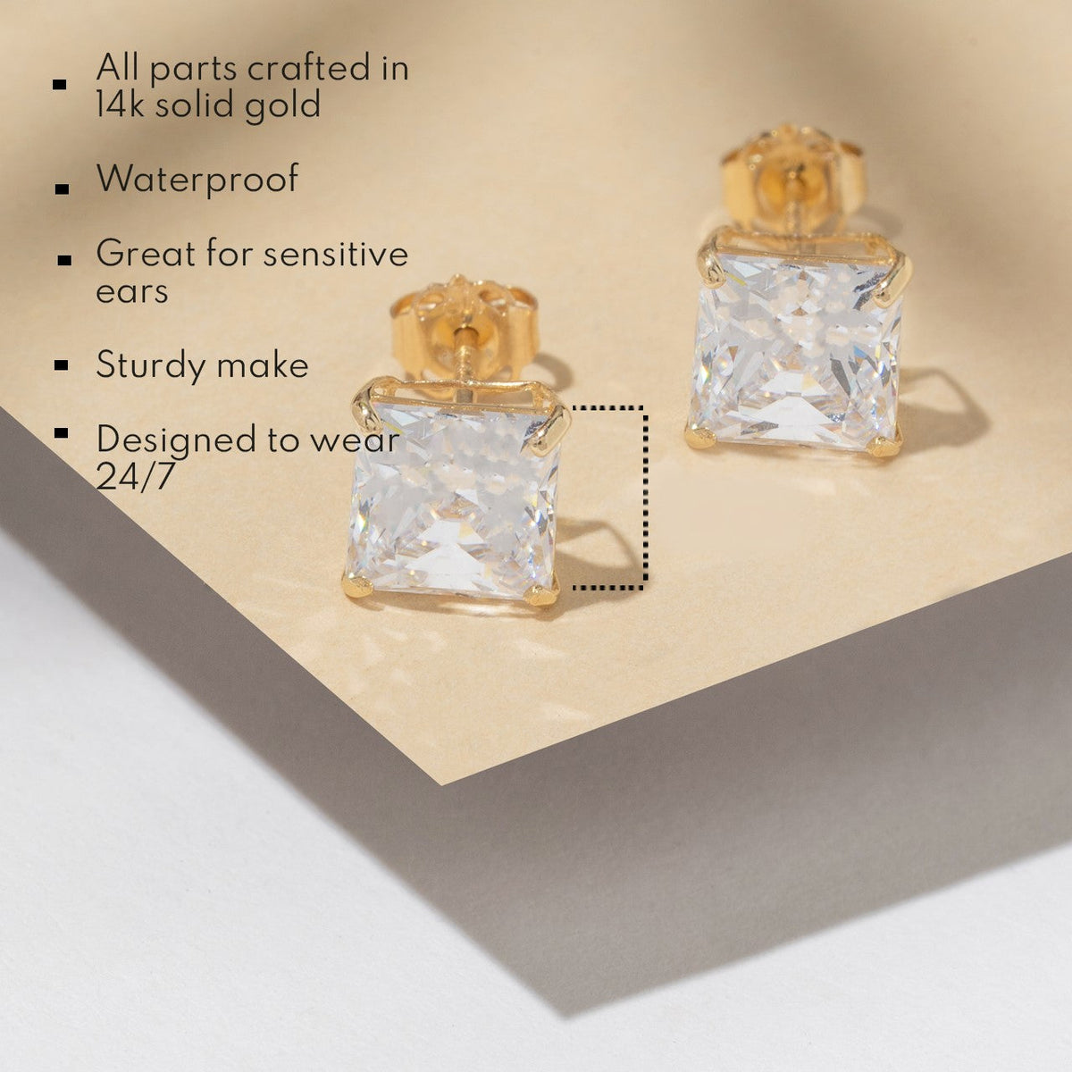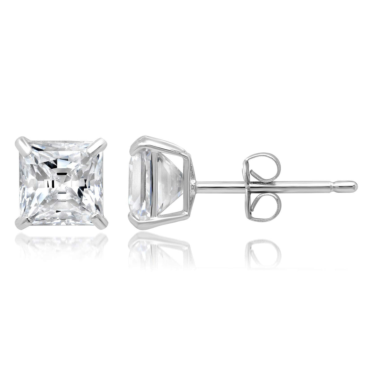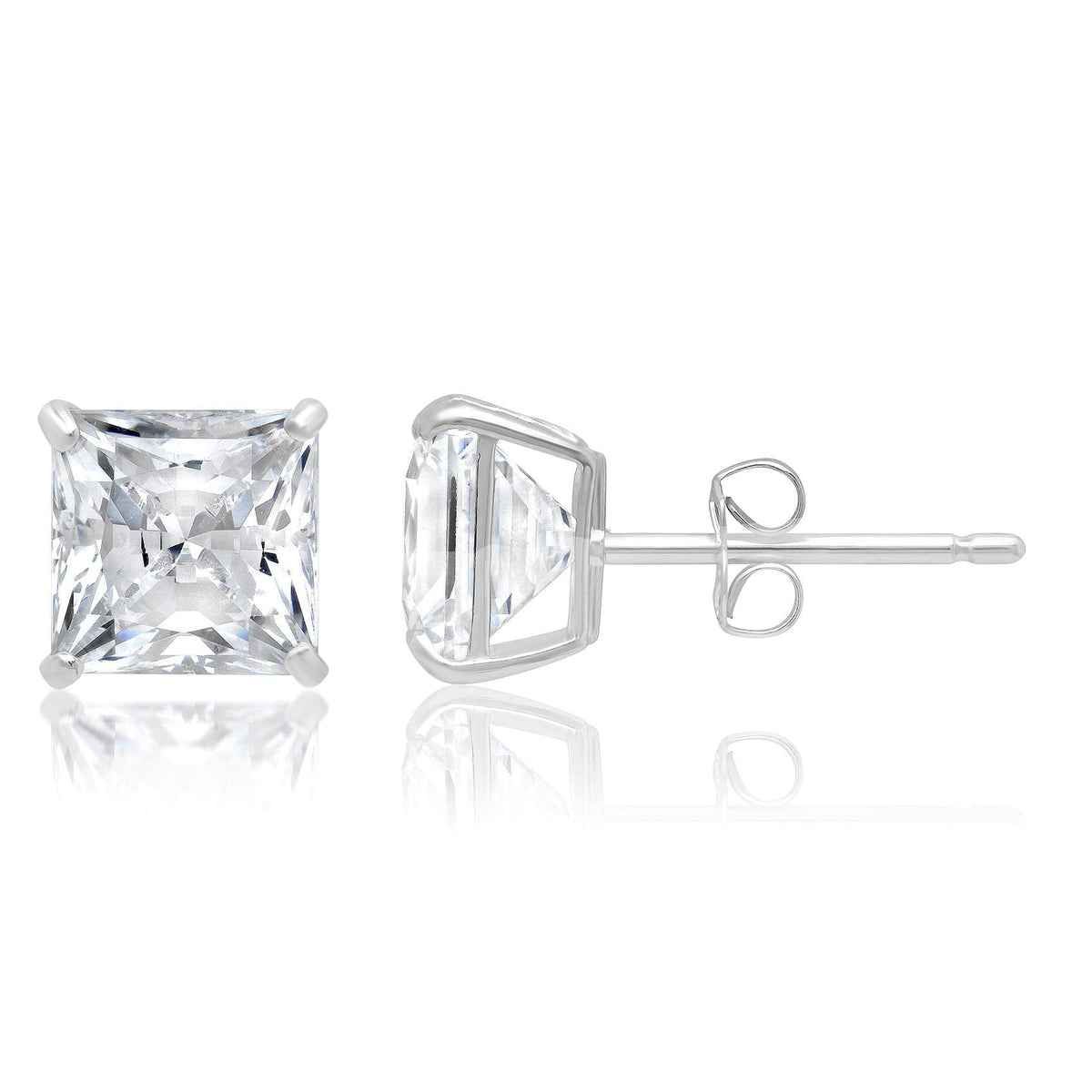 14k Solid Gold Princess Cut Stud Earrings with Genuine Swarovski Zirconia