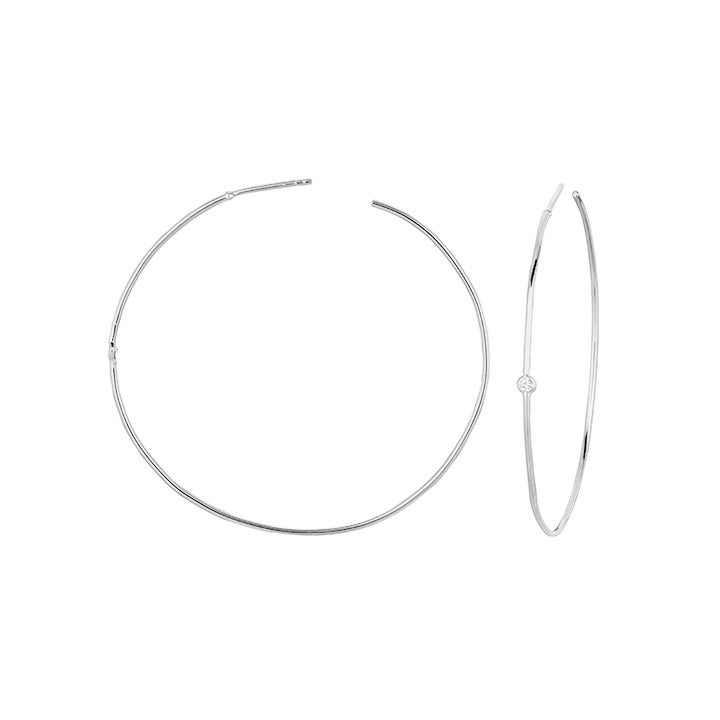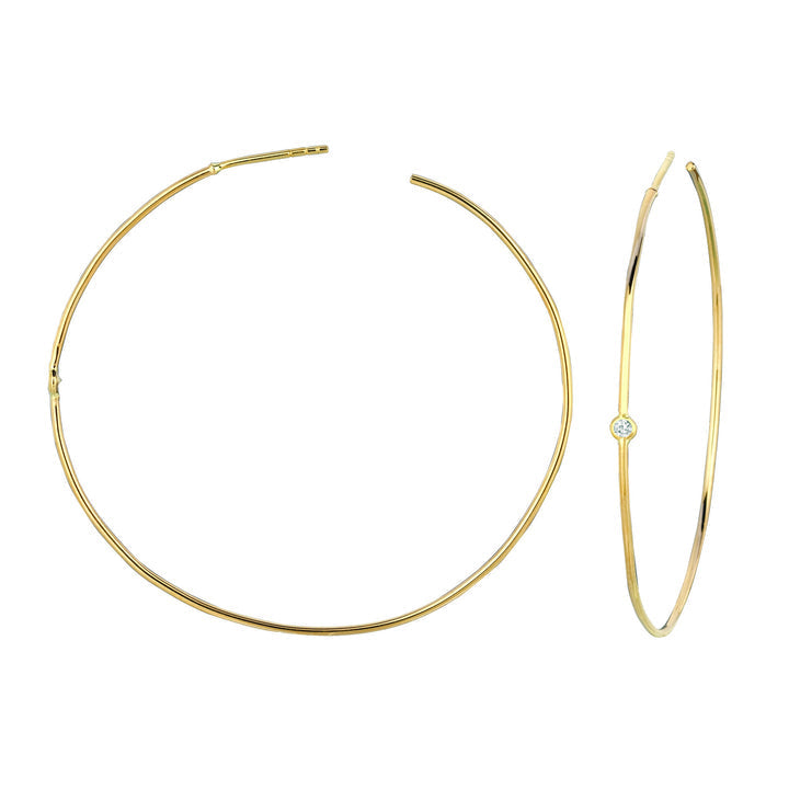 These Single Diamond Hoop Earrings by Ariana Rabbani are a modern twist on a classic design. The 14k gold hoop is adorned with a single sparkling diamond, offering just the right amount of shimmer. These earrings are perfect for adding a subtle touch of luxury to your everyday look or special occasions.