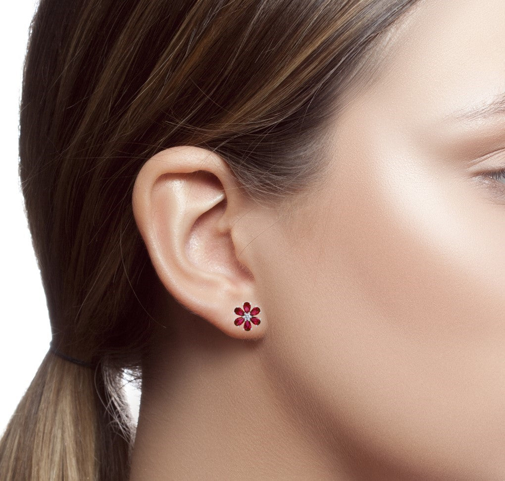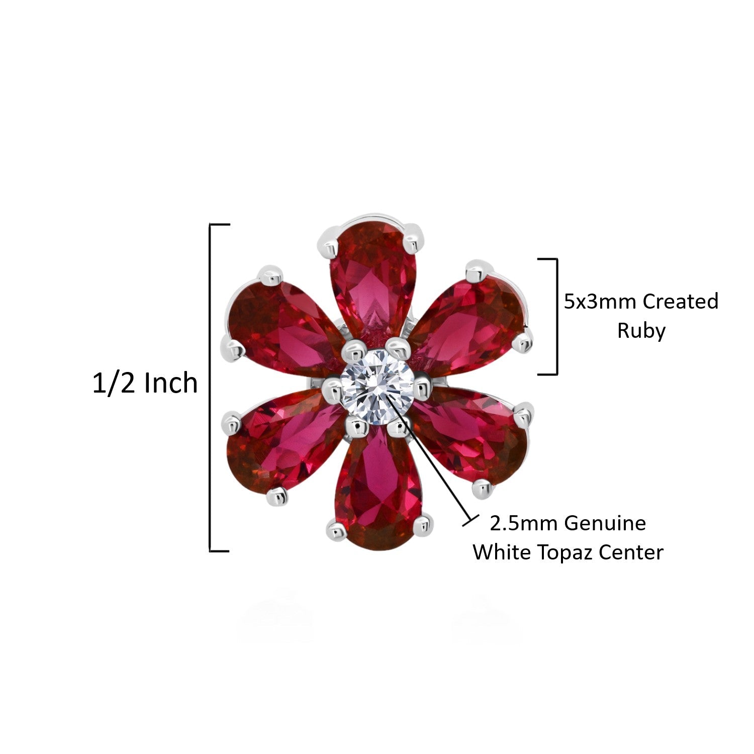 Gemstone Flower Stud Earrings in 925 Sterling Silver (1/2')