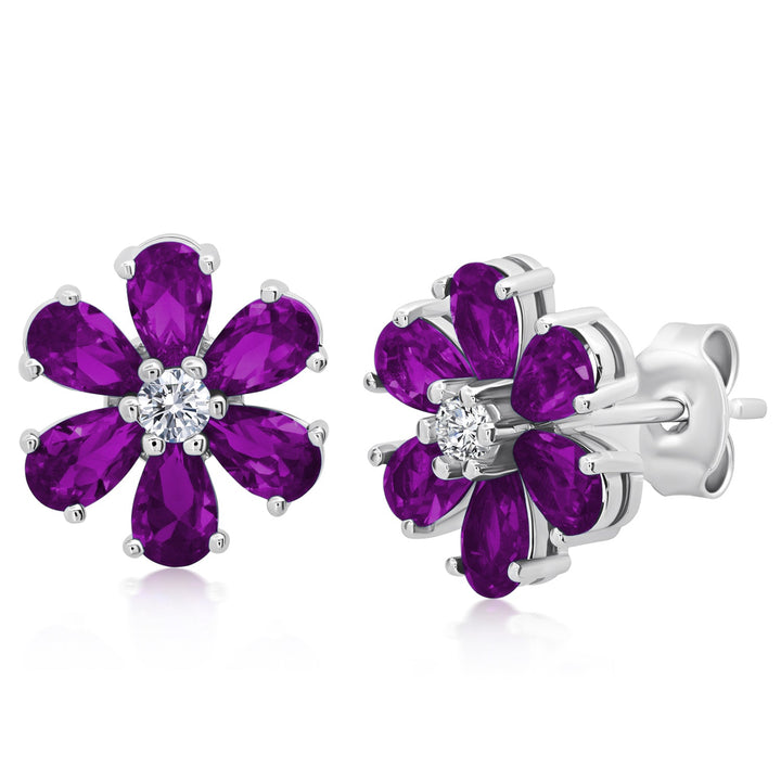 These Gemstone Flower Stud Earrings by MaxColor are a classic, elegant addition to any jewelry collection. The beautiful gemstones, hand-set in sterling silver, create a striking contrast, making these earrings perfect for both casual and formal wear. With their timeless design, these earrings make a bold yet classy statement, ideal for any occasion.