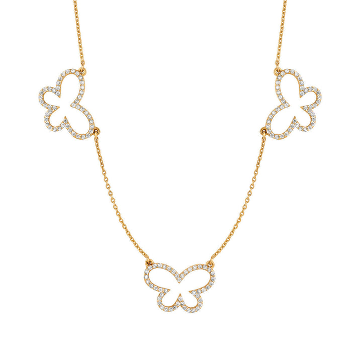 Three Diamond Butterflies (Medium) Necklace Yellow Gold