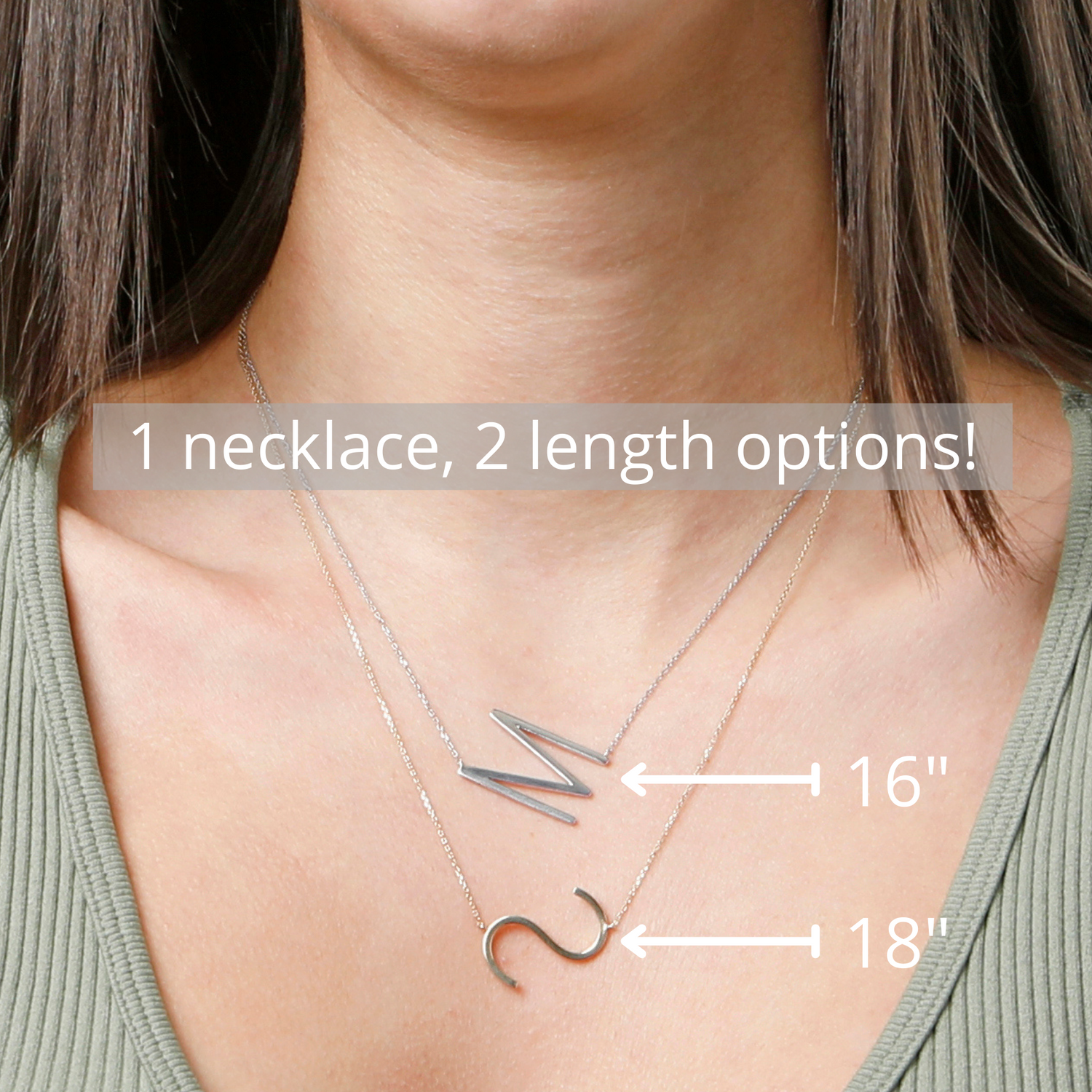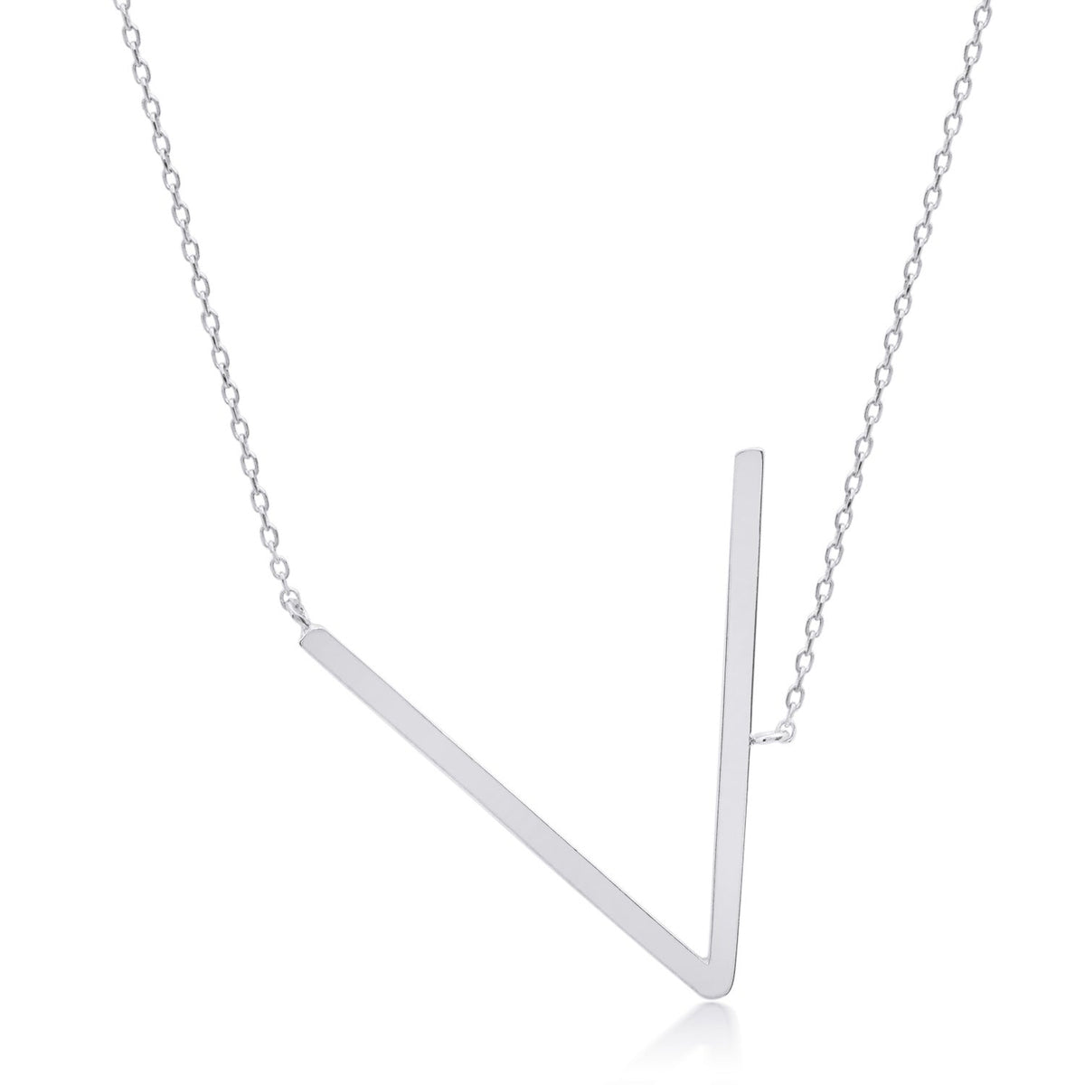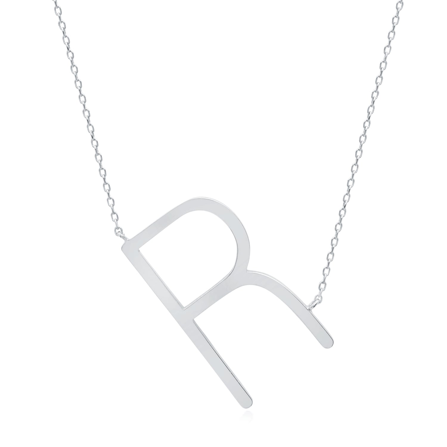 Sterling Silver Large Sideways Block Letter Initial with Extendable Cable Chain, 16 to 18 inches