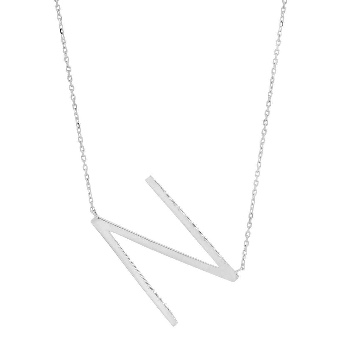 This Sterling Silver Large Sideways Block Letter Initial Necklace by MaxColor is a chic and modern accessory. The large sideways initial pendant is crafted in sterling silver, offering a bold yet sophisticated statement. The extendable cable chain (16-18 inches) ensures a customizable fit, making this necklace perfect for layering or wearing alone.