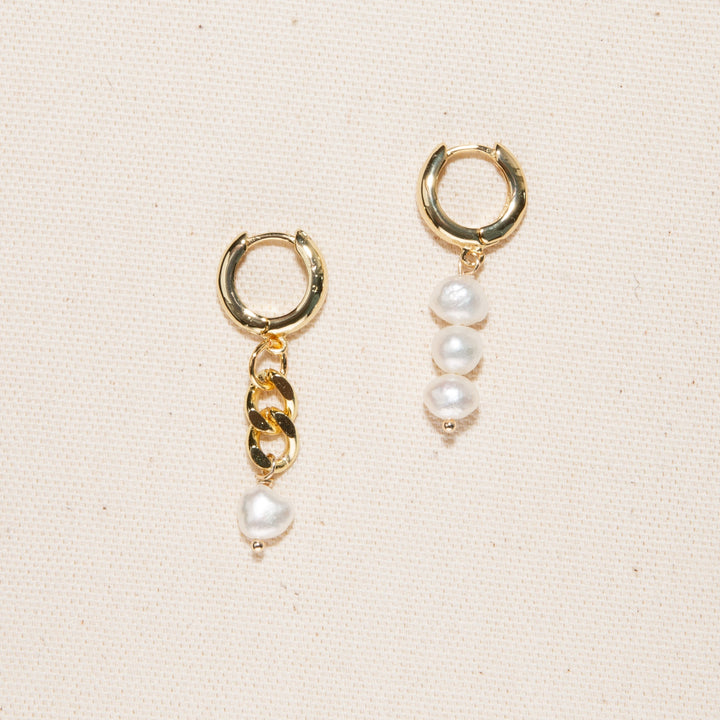 These Lauren Earrings by Joey Baby feature a stunning combination of 18K gold-plated chain and freshwater pearls. The elegant design makes them perfect for both casual and formal occasions. These earrings are timeless in their simplicity yet sophisticated enough to make a statement. Their chain design adds a modern twist to the classic pearl earring.