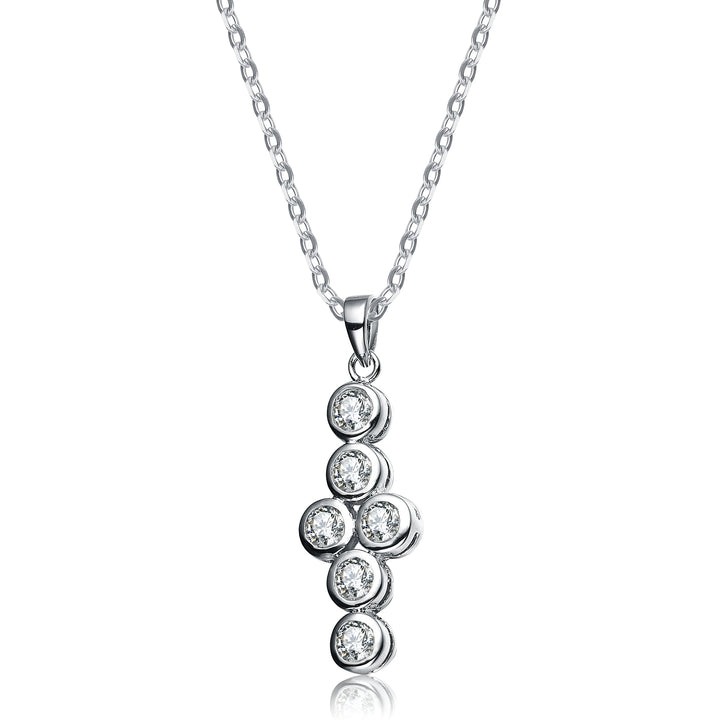 Sterling Silver White Cubic Zirconia Dangling Pendant Necklace