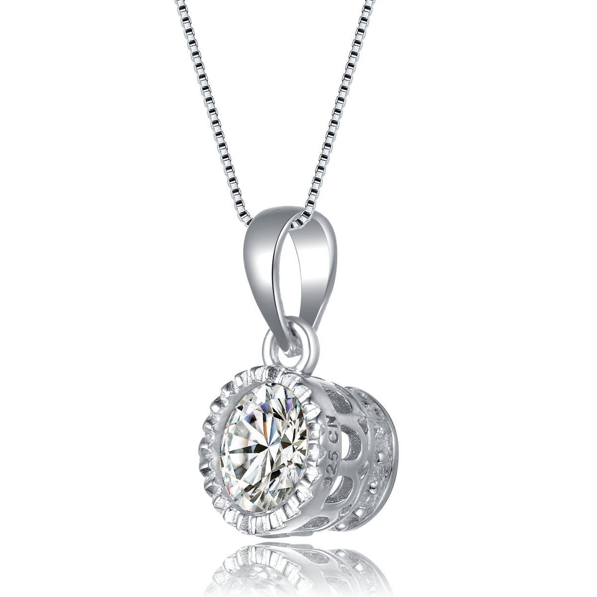 Sterling Silver Round Clear Cubic Zirconia Accent Pendant Necklace
