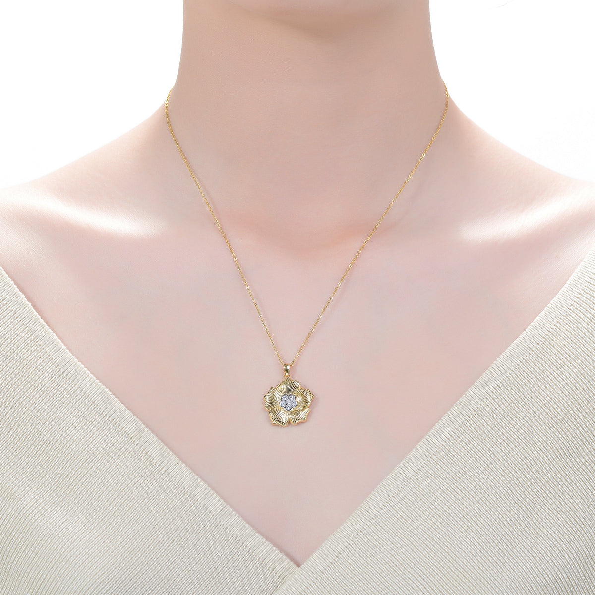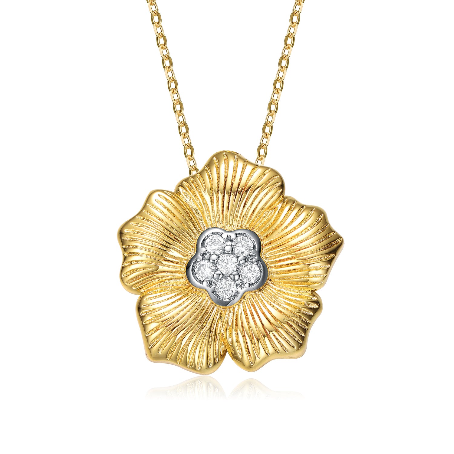 Rhodium And 14k Gold Plated Cubic Zirconia Floral Pendant
