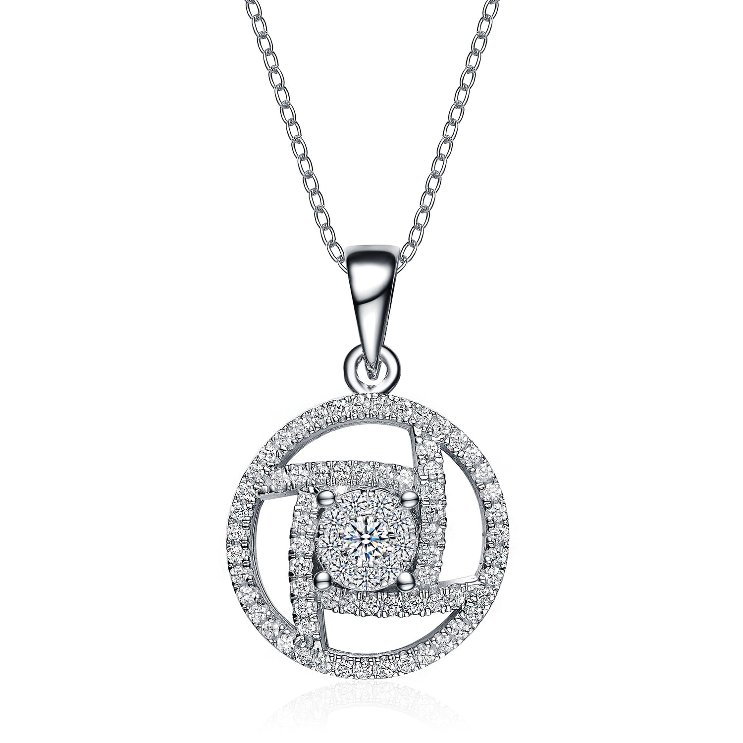 This Sterling Silver White Cubic Zirconia Pendant by Genevive Jewelry is a stunning, circular pendant featuring a large brilliant white cubic zirconia at the center, surrounded by smaller cubic zirconia accents. The sparkling design adds a touch of sophistication and glamour, making it perfect for everyday wear or for dressing up your evening looks. This pendant is a versatile addition to any jewelry collection.
