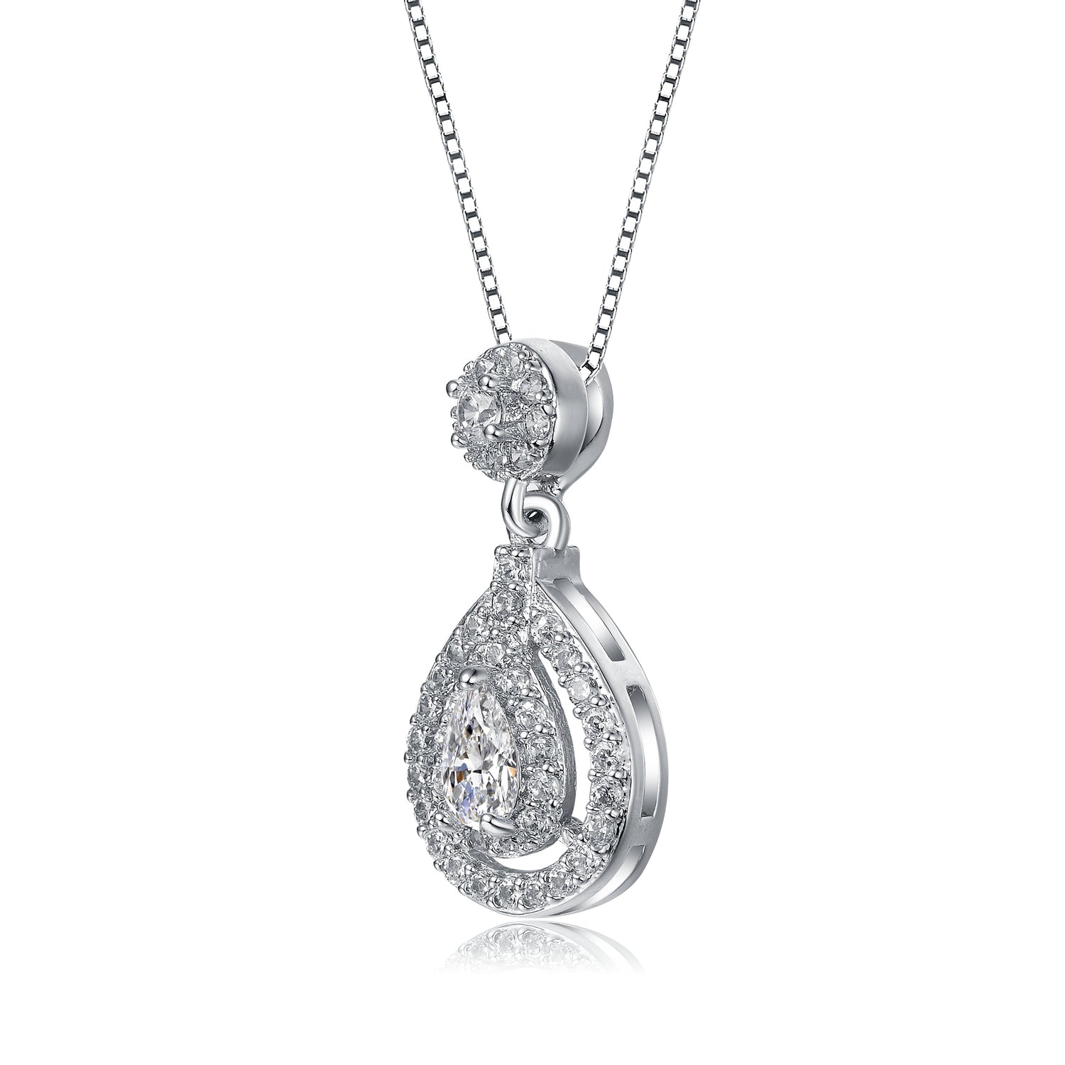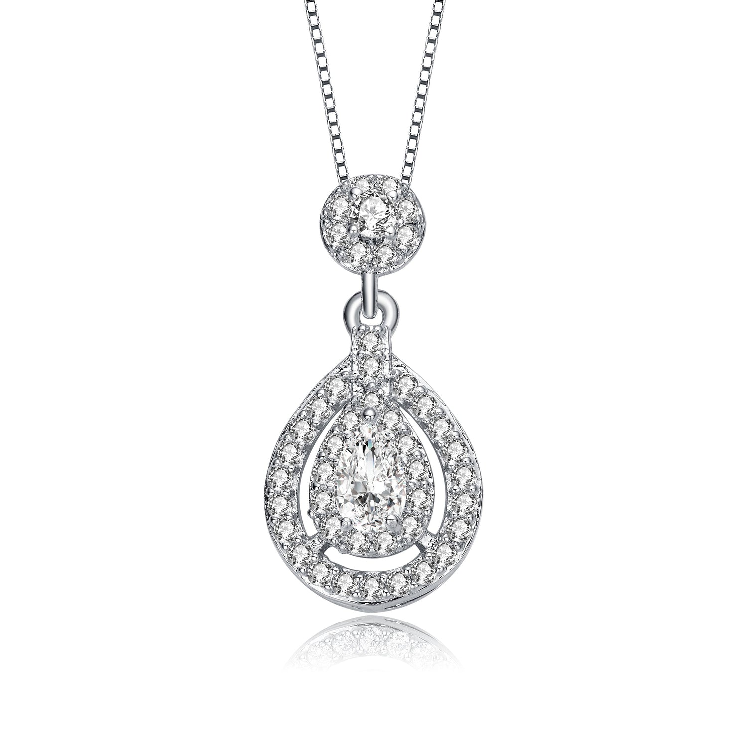 Sterling Silver With Rhodium Plated Pear And Round Cz Accent Drop Pendant Necklace