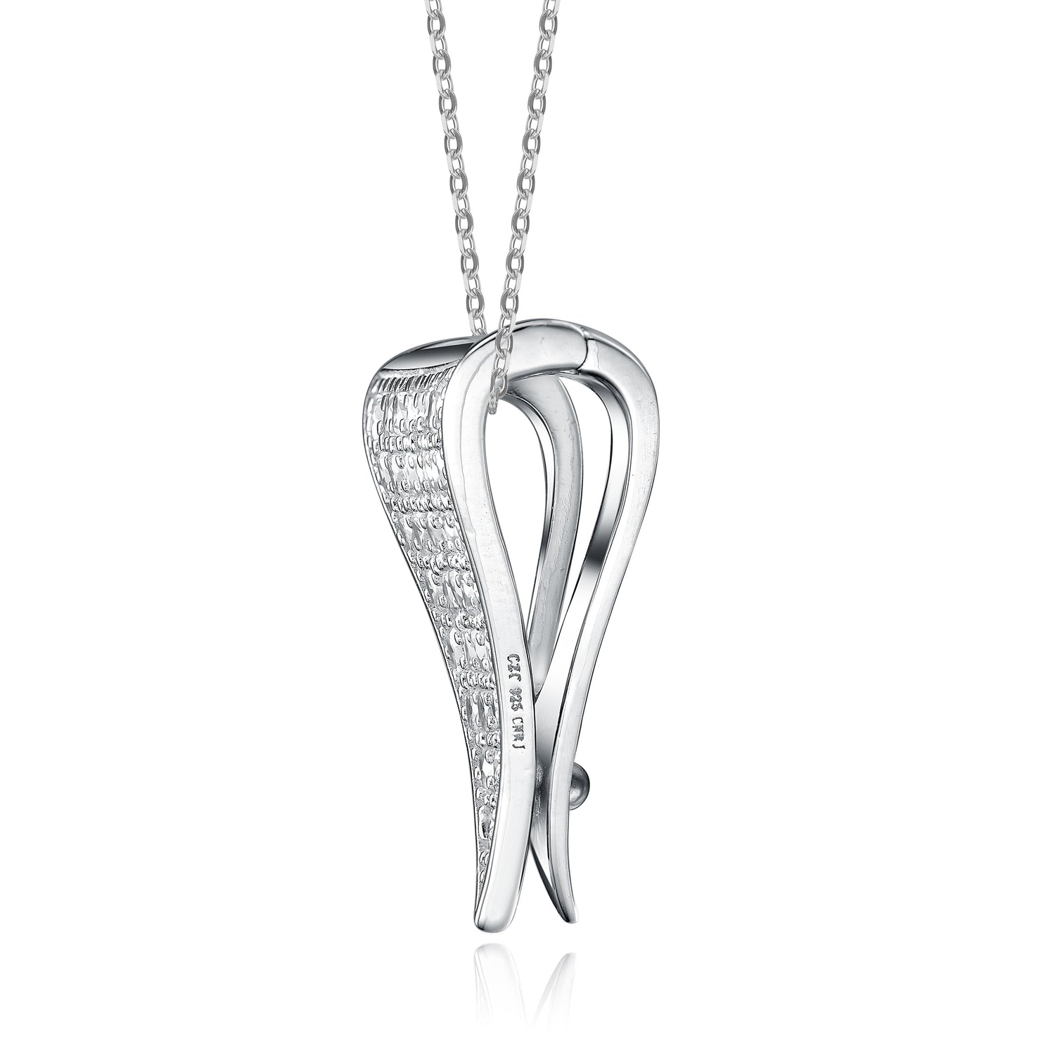 Crafted in sterling silver with pave cubic zirconia stones. Includes chain with clasp closure.