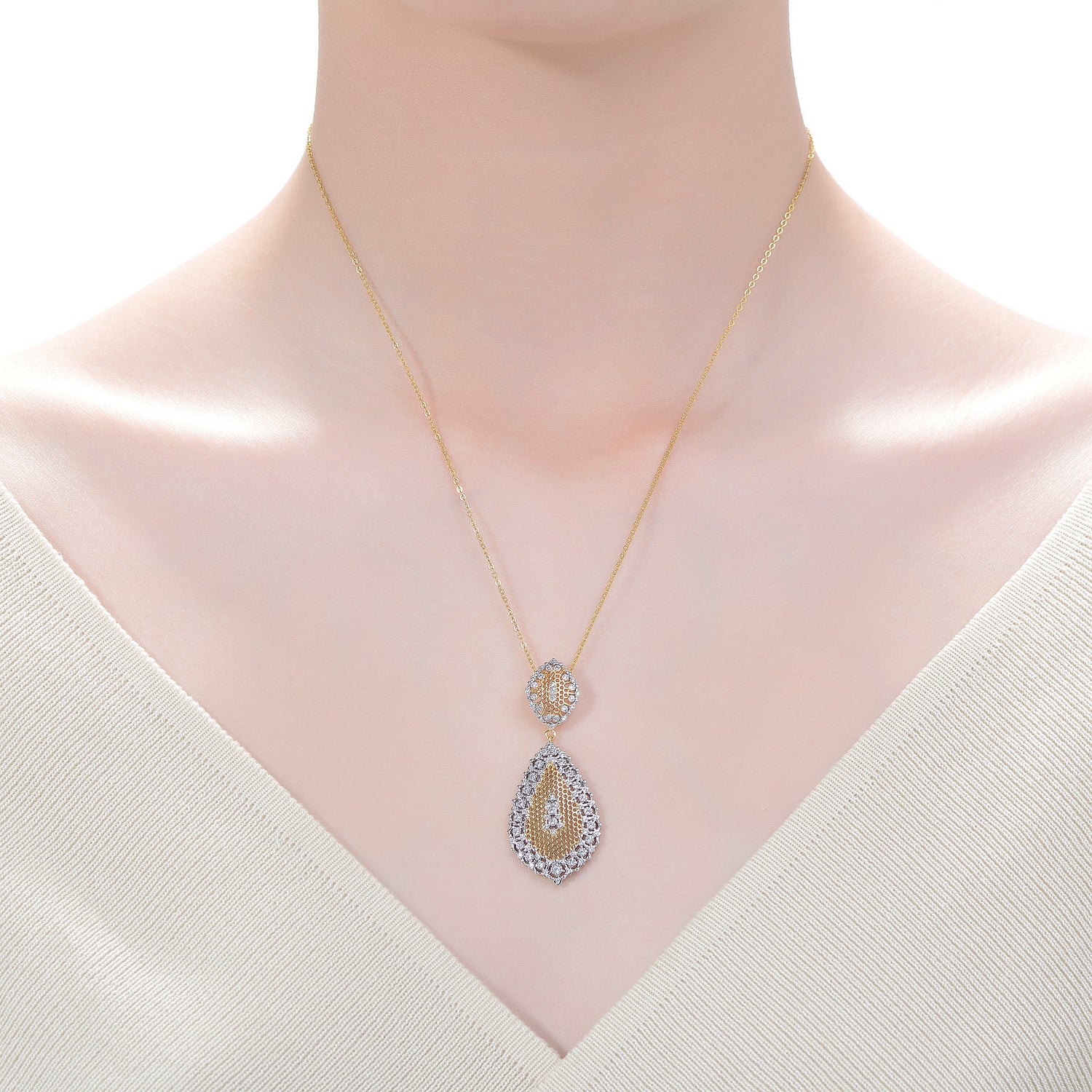 Rhodium And 14k Gold Plated Cubic Zirconia Pendant Necklace