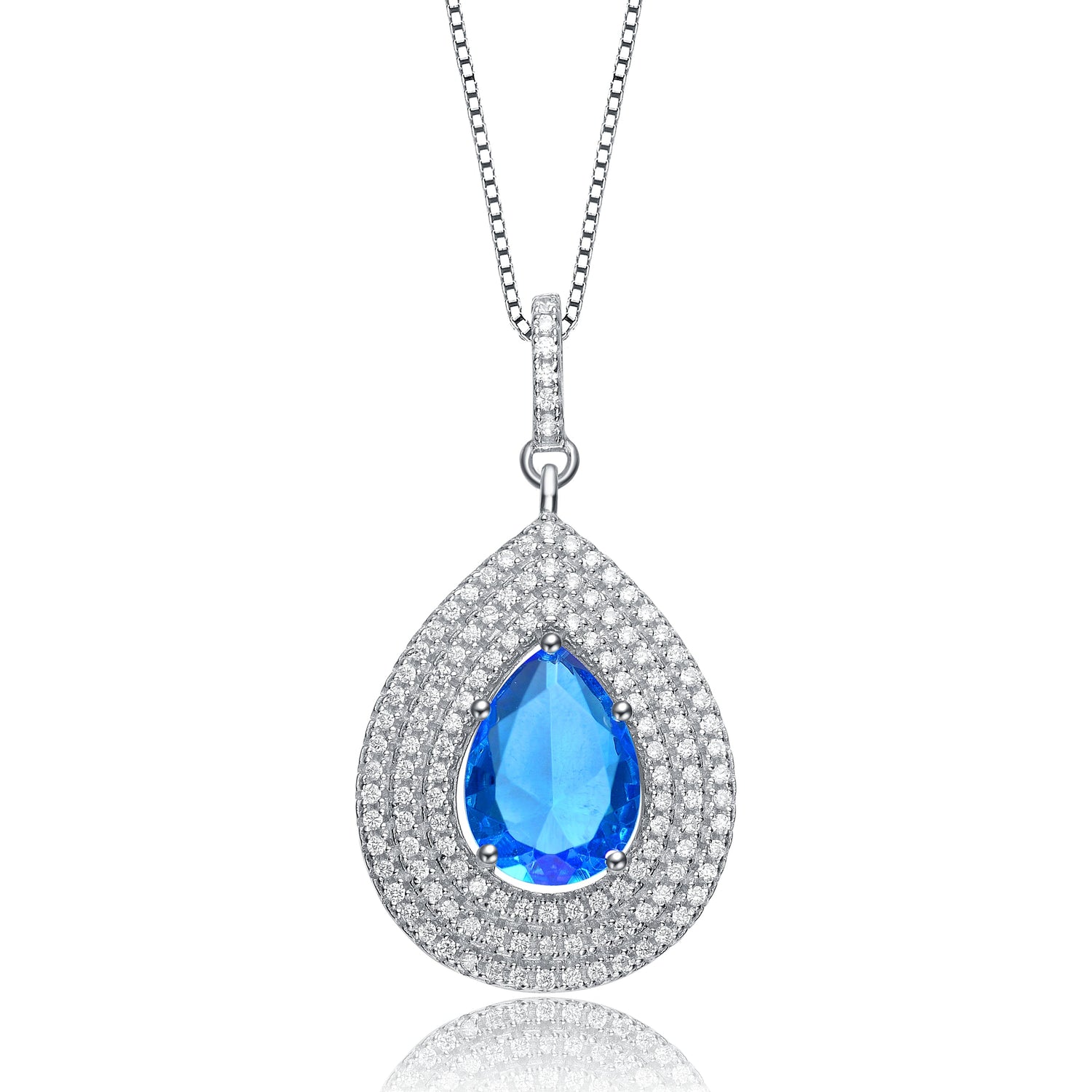 Sterling Silver Light Blue Oval Teardrop White Cubic Zirconia Pendant