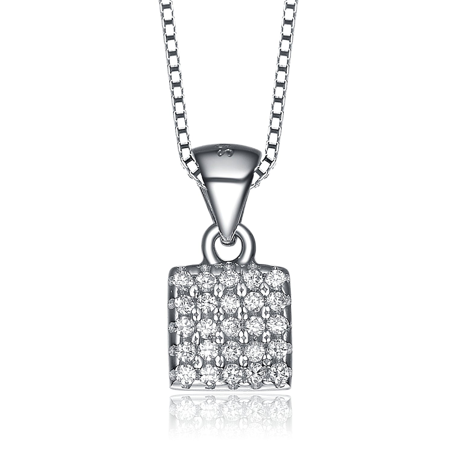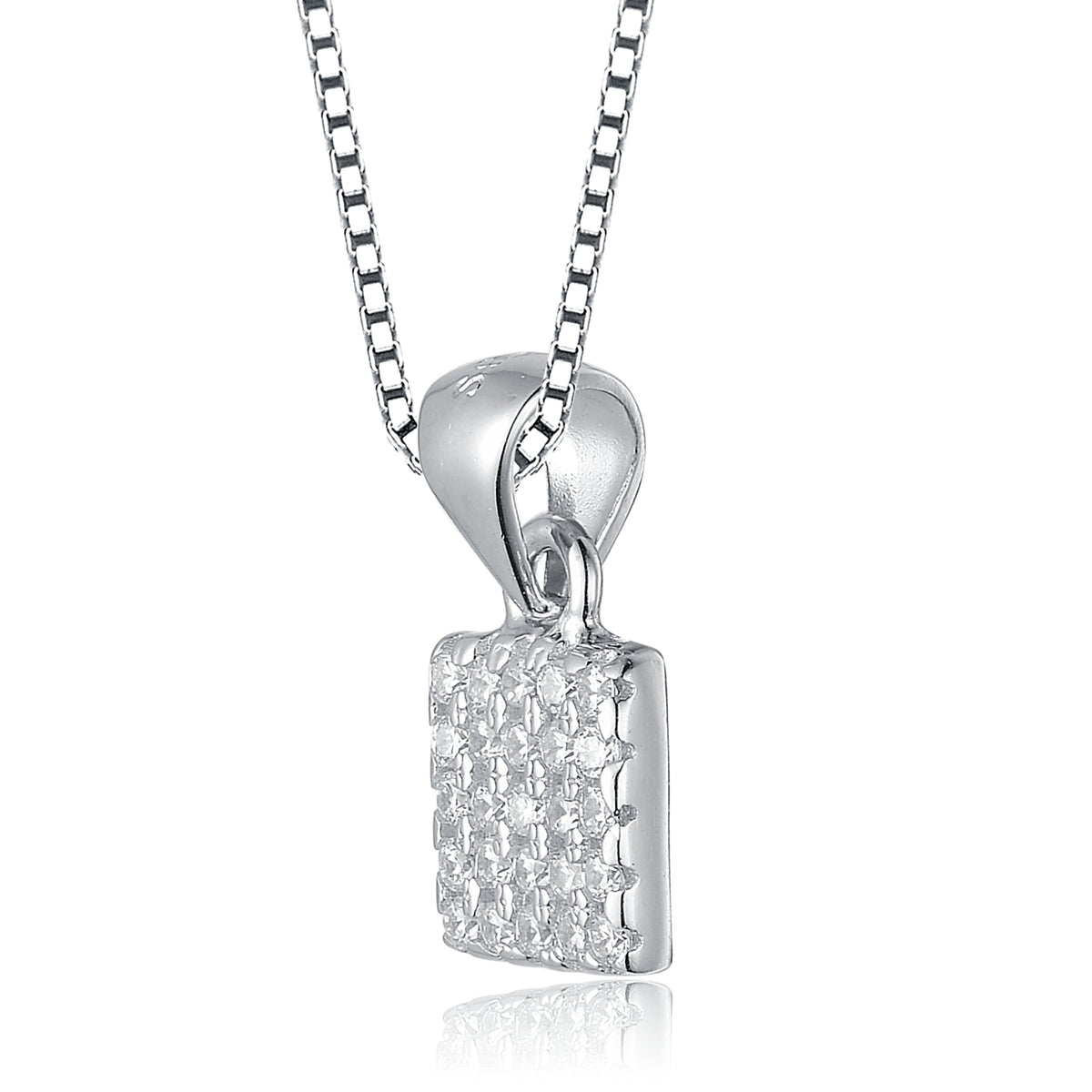 C.z. Sterling Silver Rhodium Plated Square Shape Pendant