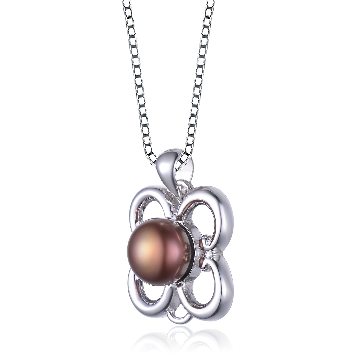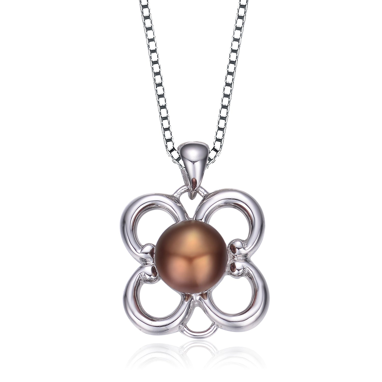Sterling Silver Faux Brown Pearl Flower Shape Necklace