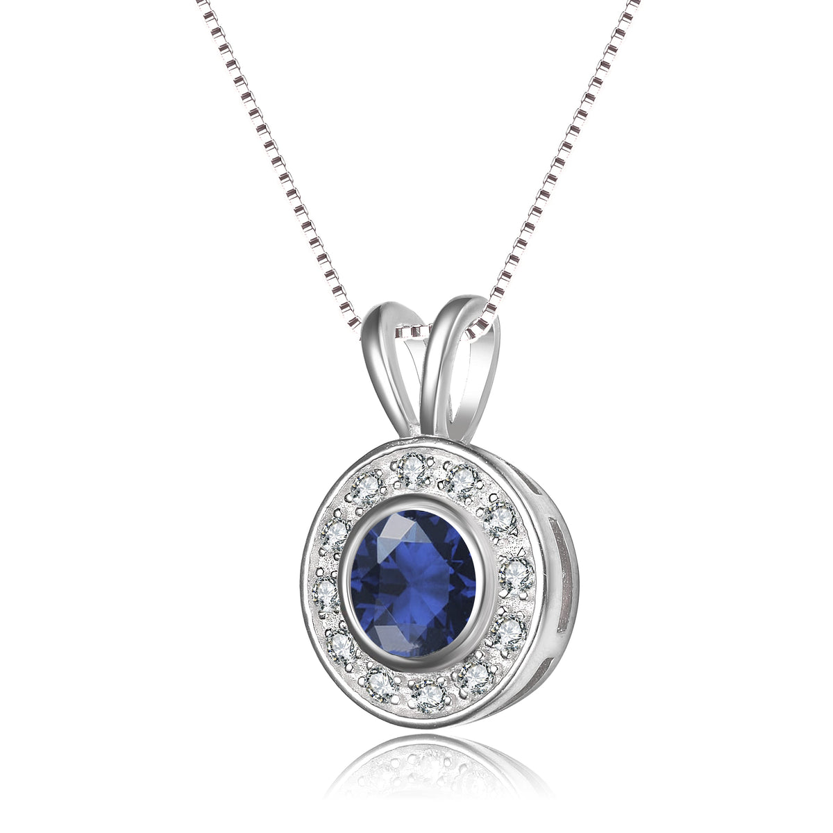Sterling Silver Blue Cubic Zirconia Round Necklace