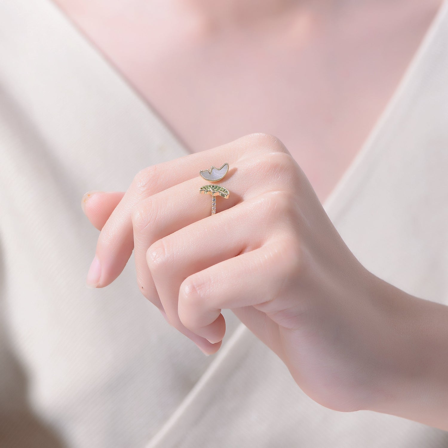 Gold Plated Green Cubic Zirconia Bypass Ring
