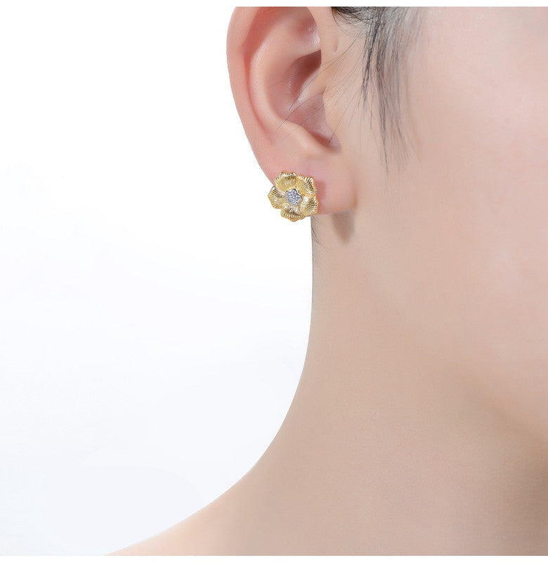 14k Gold Plated And Cubic Zirconia Floral Stud Earrings