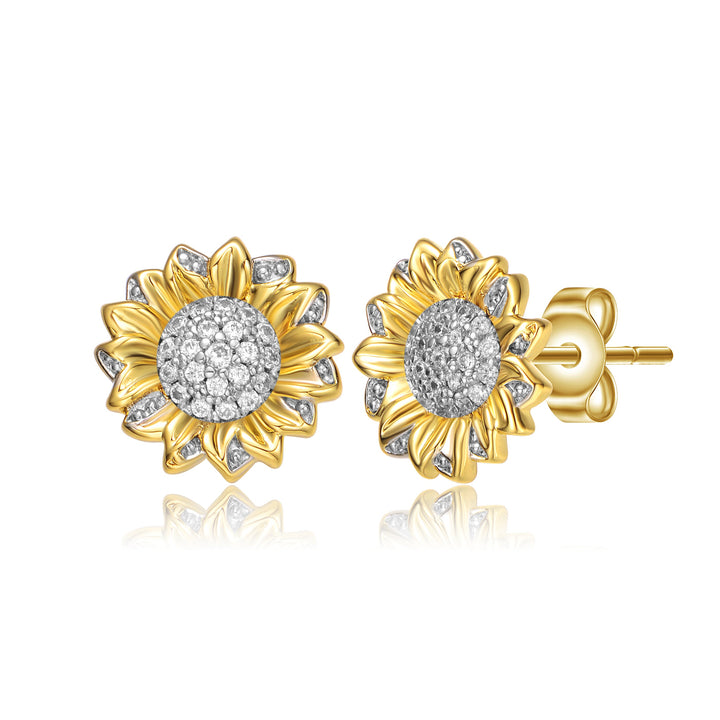 Crafted in rhodium-plated and 14k gold-plated sterling silver with clear round cubic zirconia stones. Secured with a butterfly closure.