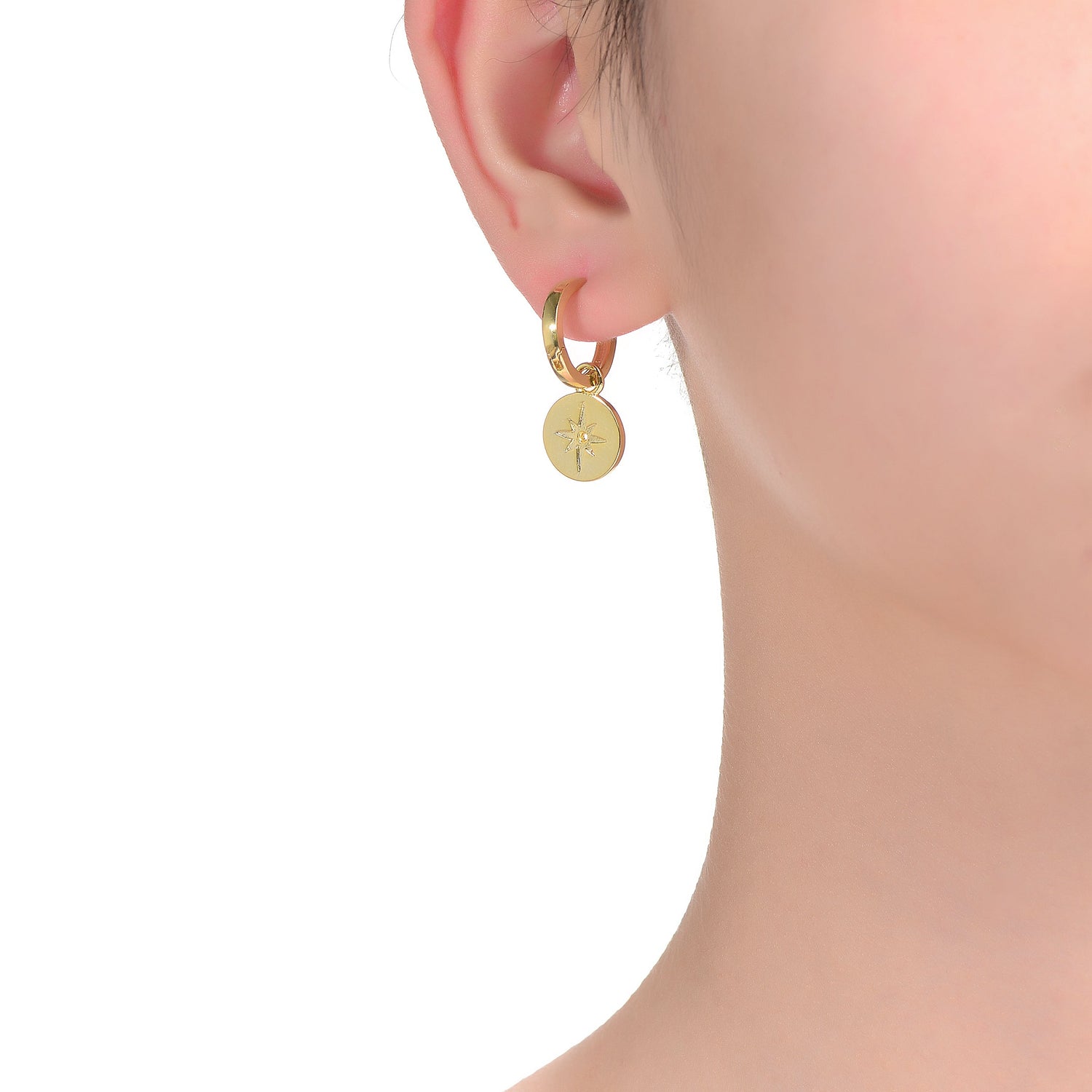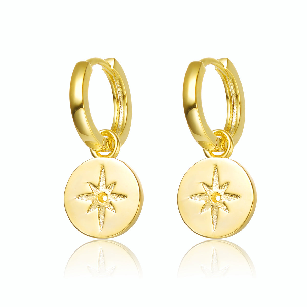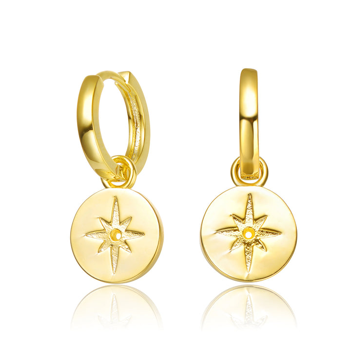 Handcrafted in 14k gold plating with engraved star drop charms. Secured with a saddleback closure.