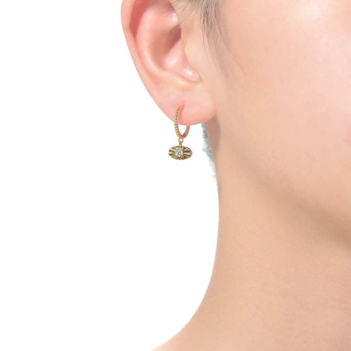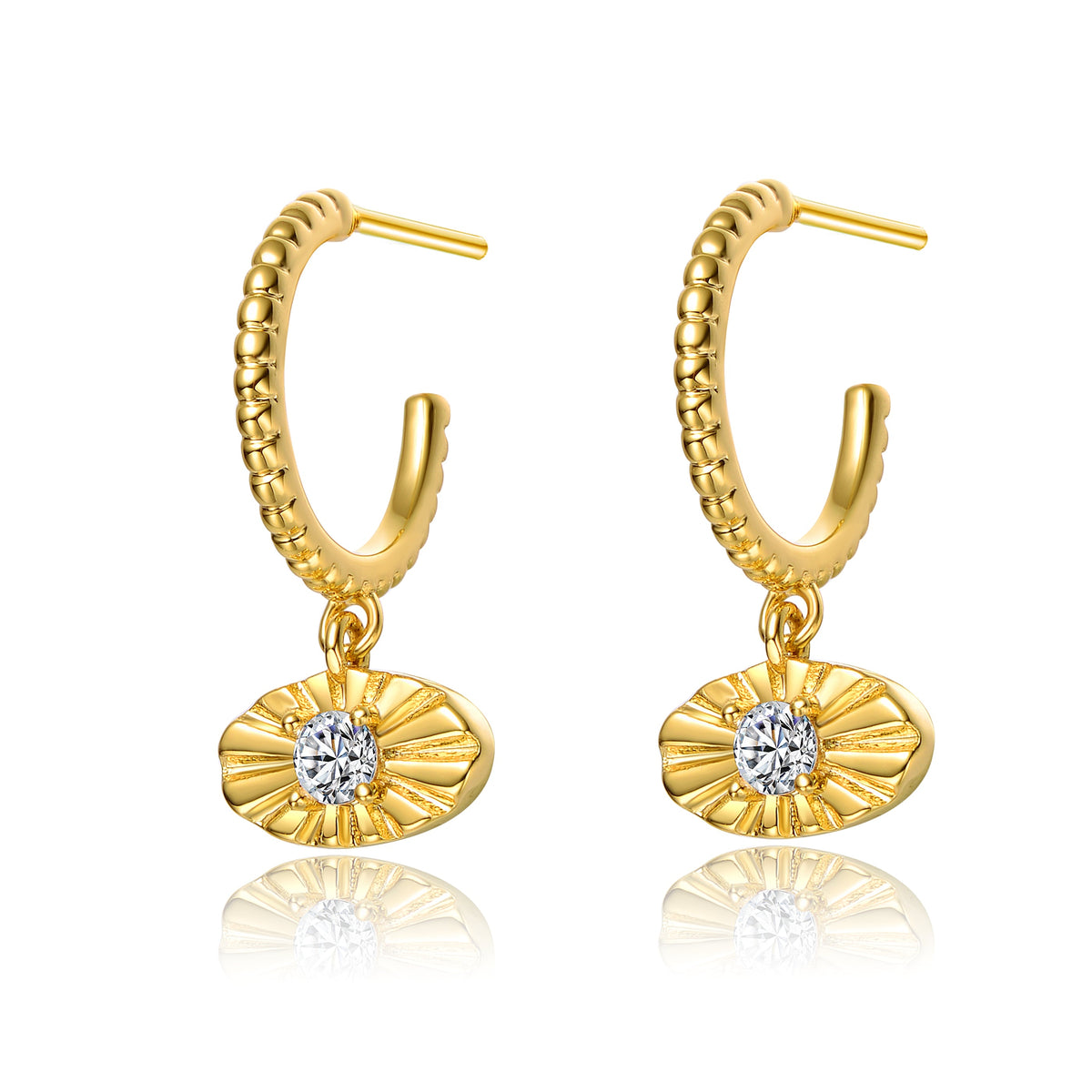 Handcrafted in 14k gold plating with cubic zirconia stones. Secured with a butterfly closure.