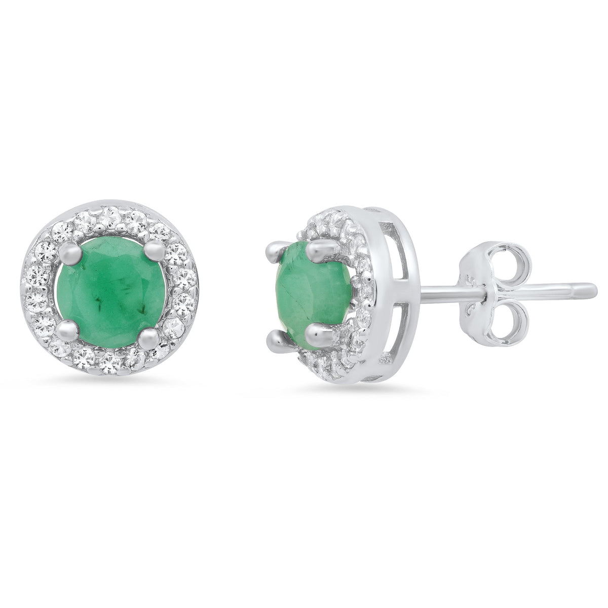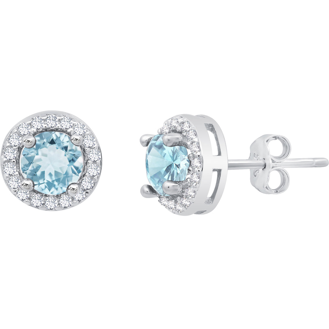 Sterling Silver Round Genuine Gemstone and White Topaz Earring 4mm