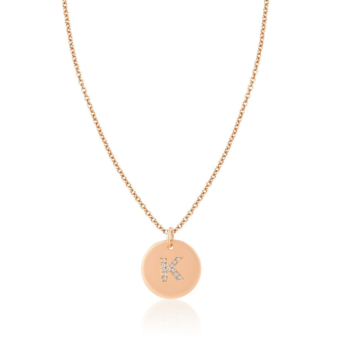 This Diamond Letter Disc Gold Bale Necklace by Ariana Rabbani combines personal meaning with refined elegance. The 14k gold necklace features a medium disc with a micro-pave diamond initial on a bale, available in yellow and white gold. The 16-inch length ensures it sits comfortably on the neckline, adding a graceful touch to any outfit.