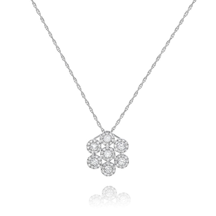 This Diana M Diamond Necklace in 14K White Gold features 0.49 carats of diamonds, set in polished 14K white gold. The sleek, refined design makes it the perfect piece to add a touch of elegance and sophistication to any look. This necklace symbolizes timeless beauty and is ideal for both formal and everyday wear. Its sparkling diamonds reflect love, strength, and lasting beauty.