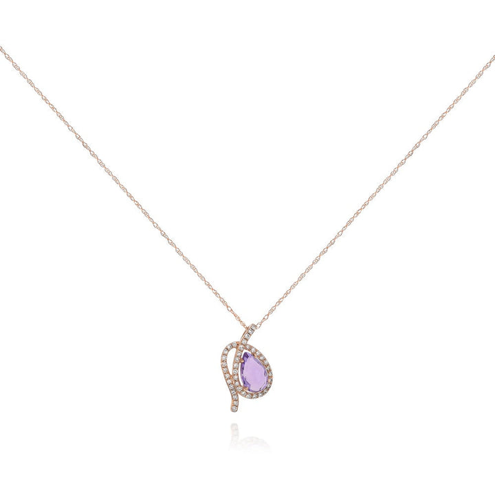 This Diana M Diamond Necklace in 14K Rose Gold features 0.17 carats of diamonds and 0.89 carats of amethyst, set in polished 14K rose gold. The combination of diamonds and amethyst creates a stunning contrast, symbolizing love and protection. This necklace is perfect for layering or wearing alone for a sophisticated look.