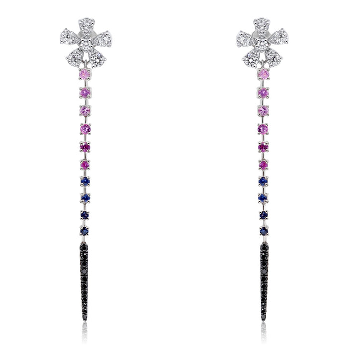 Crafted in 14KT White Gold with 64 diamonds totaling 0.61 carats. The earrings weigh 4.11 grams. Each diamond is SI clarity and G-H in color.