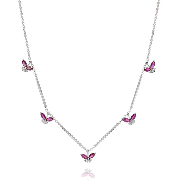 Handcrafted in 14KT White Gold with 0.31 carats of diamonds and 0.79 carats of rubies. The necklace weighs 2.24 grams and includes 20 stones. Each diamond is SI clarity and G-H in color.