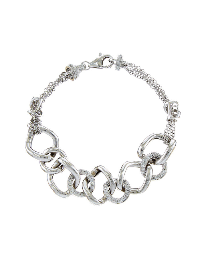 This Diana M Diamond Bracelet by Diana M is a luxurious piece featuring 1.00 carat of sparkling diamonds set in 18k white gold. The elegant design highlights the brilliance of the diamonds, making this bracelet an exquisite addition to any collection. Its clean, sophisticated lines offer versatility, making it suitable for both casual and formal occasions. The bracelet symbolizes timeless beauty and sophistication, a true statement piece for the discerning jewelry lover.