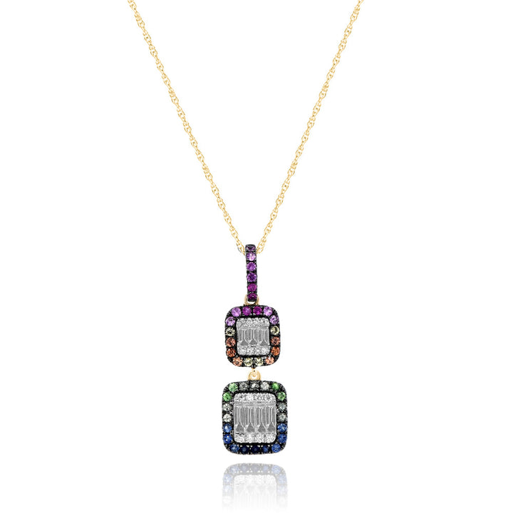Made from 14k yellow gold with 0.06-carat diamonds, G-H color, and SI clarity. The necklace weighs 1.89 grams and measures 18 inches in length.