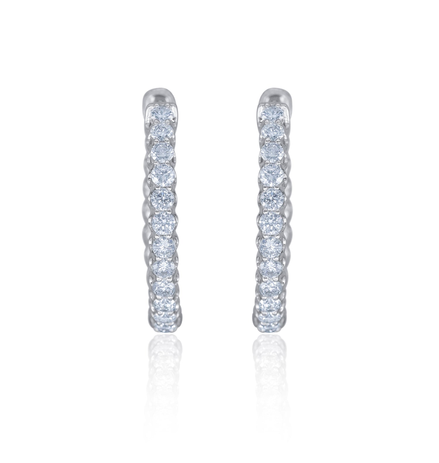 Handcrafted in 14K white gold with 1.47 carats of diamonds (SI clarity, G-H color), weighing 3.65 grams. The earrings feature 44 diamonds, each carefully set for optimal sparkle.