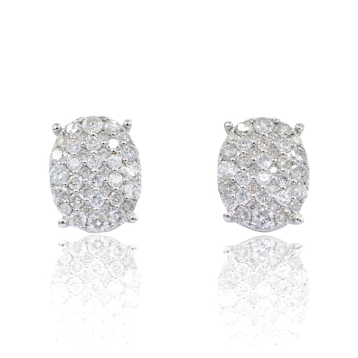 Made from 18K white gold with 0.95 carats of diamonds (SI clarity, G-H color), weighing 2.8 grams. The earrings feature 76 diamonds, each set to enhance their natural brilliance.