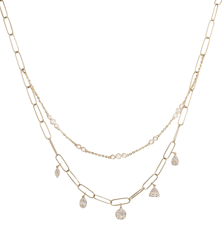 This Diamond Necklace by Diana M is a true statement of sophistication and luxury. Set in 14K yellow gold, it features 0.93 carats of diamonds, creating an elegant and timeless design. With 54 carefully selected diamonds, this necklace is ideal for special occasions or for adding a touch of sparkle to everyday wear. The design embodies grace and beauty, making it a perfect gift or a treasured addition to your jewelry collection.