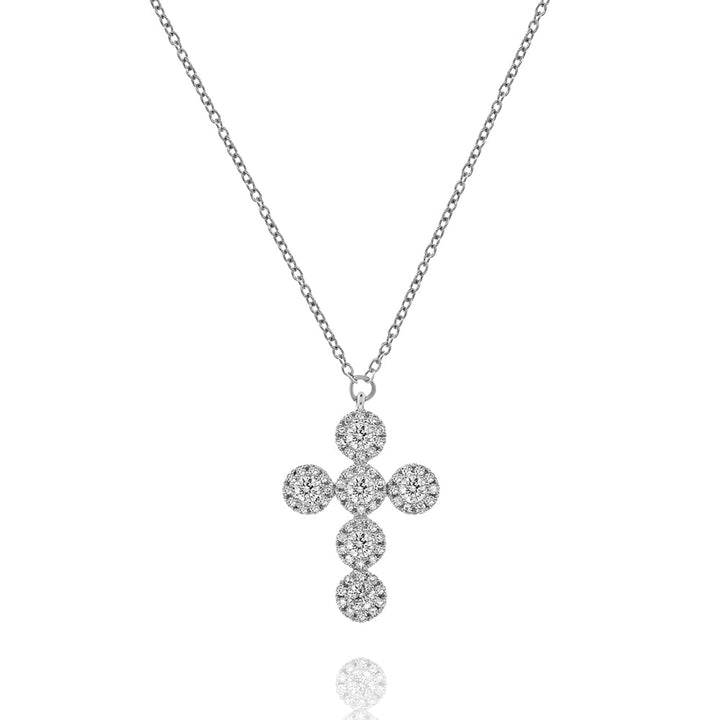 Handcrafted in 14-karat white gold, this necklace features 66 round brilliant diamonds, totaling 0.34 carats, and scattered accent diamonds totaling 0.18 carats. The diamonds are G-H color, SI clarity. The necklace weighs 2.35 grams and measures 18 inches in length.
