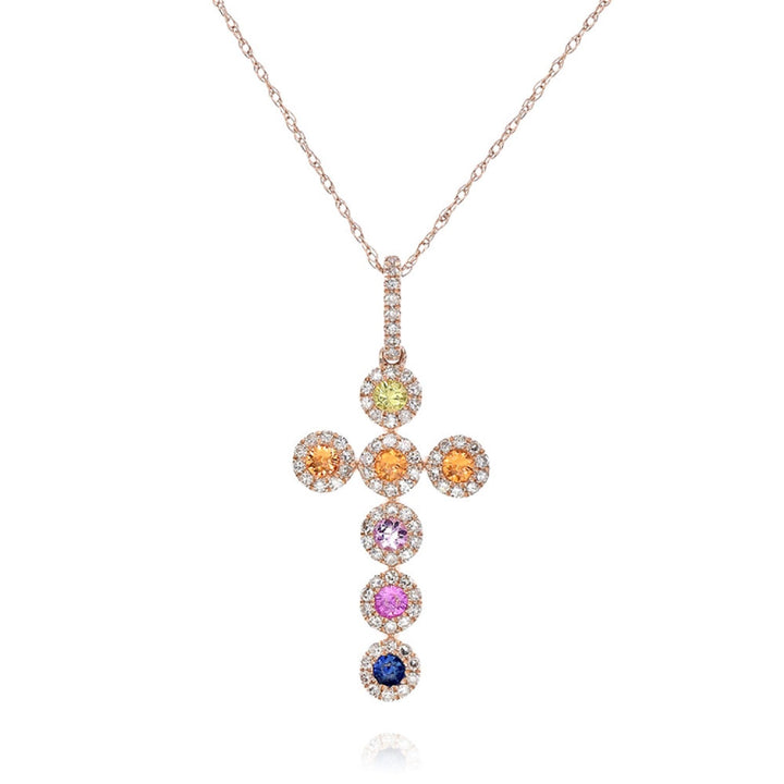 Handcrafted in 14-karat rose gold, this pendant features 0.29 carats of round brilliant diamonds and 0.45 carats of multi-shaped accent diamonds. The diamonds are G-H color, SI clarity. The total weight is 1.57 grams.