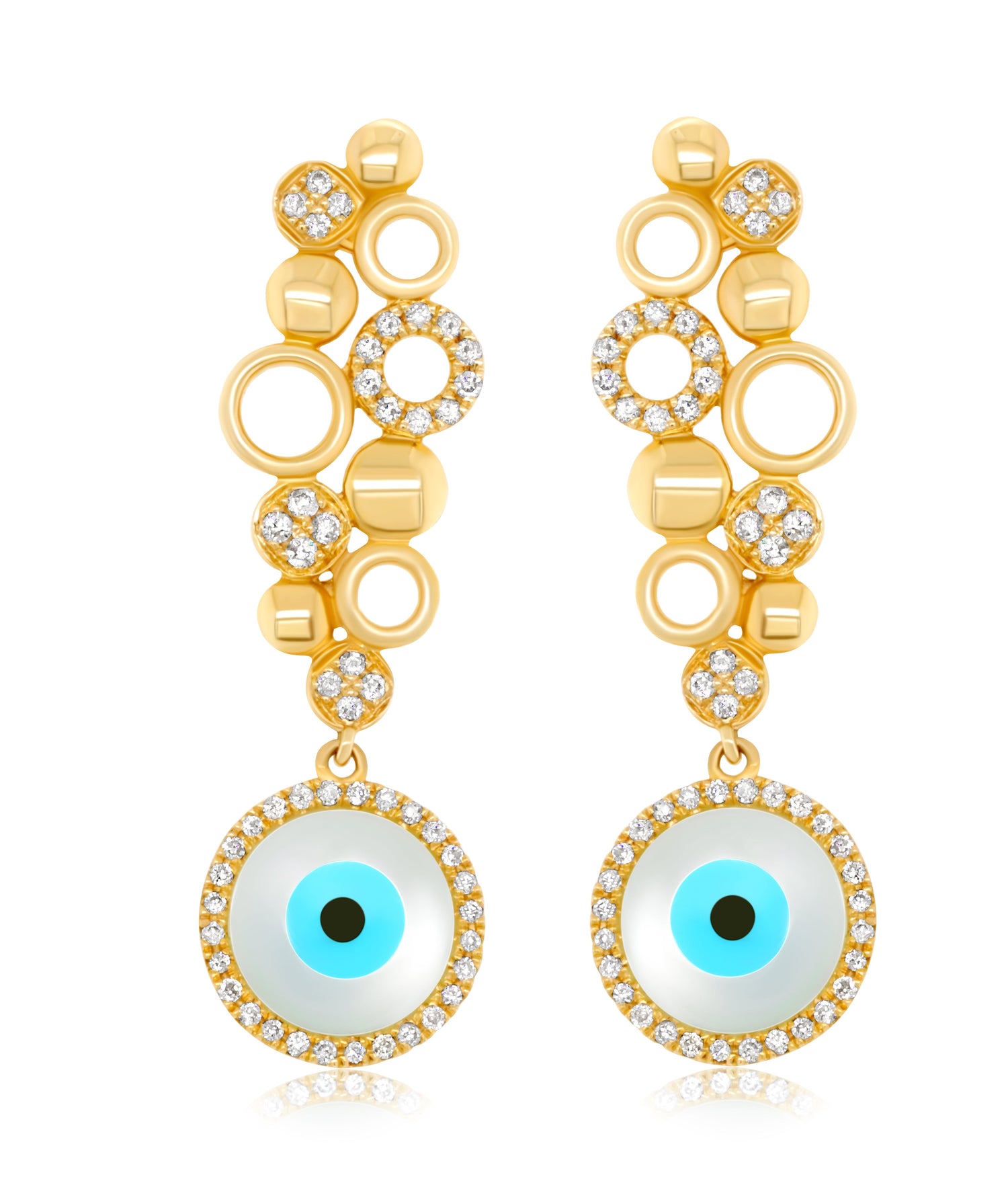 These 14K Yellow Gold Diamond Earrings by Diana M are a striking blend of brilliance and elegance, featuring 100 carefully arranged stones. With 0.38 carats of diamonds and 2.38 carats of diamond-cut stones, these earrings make a statement with their radiant allure.