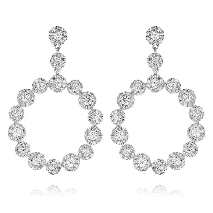 These 14K Yellow Gold Diamond Earrings by Diana M feature a brilliant composition of 320 diamonds, totaling 0.95 carats of diamonds and 0.75 carats of scattered diamonds, exuding luminous charm.