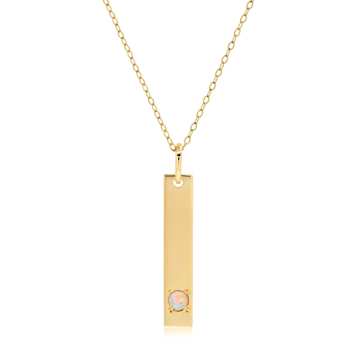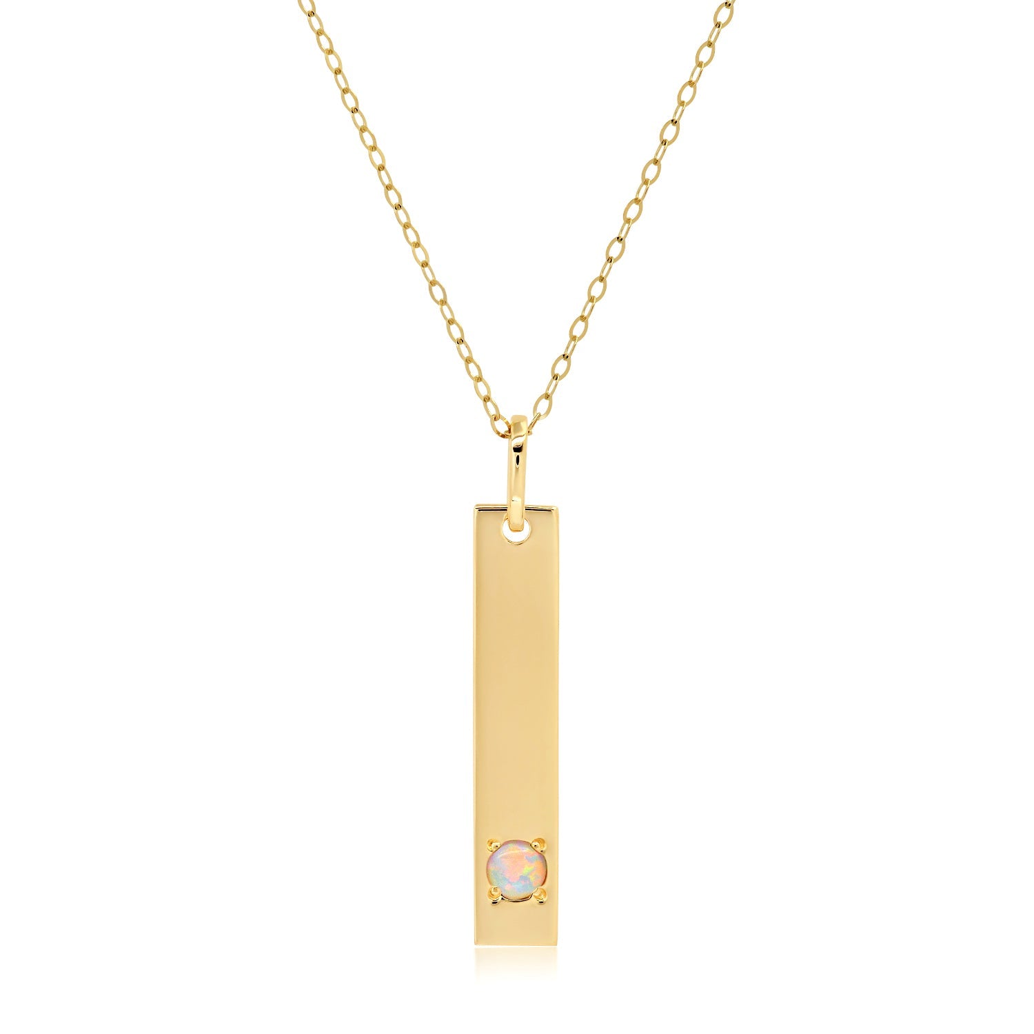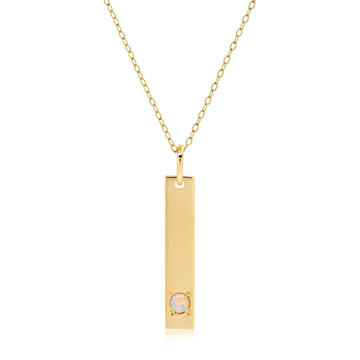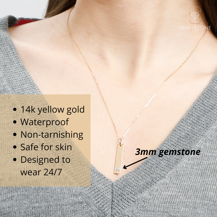 14k Yellow Gold Bar Pendant Necklace with 3mm Small Round Gemstone Adjustable Cable Chain 16 Inches to 18 Inches with Spring Ring Clasp