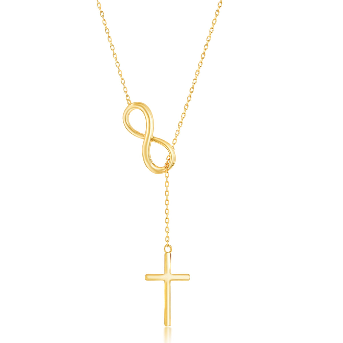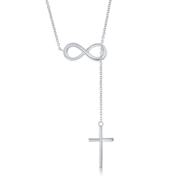 Sterling Silver Center Infinity with Hanging Chain and Cross Necklace