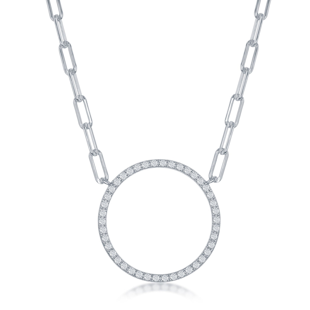 Sterling Silver CZ Circle of Life Paperclip Necklace