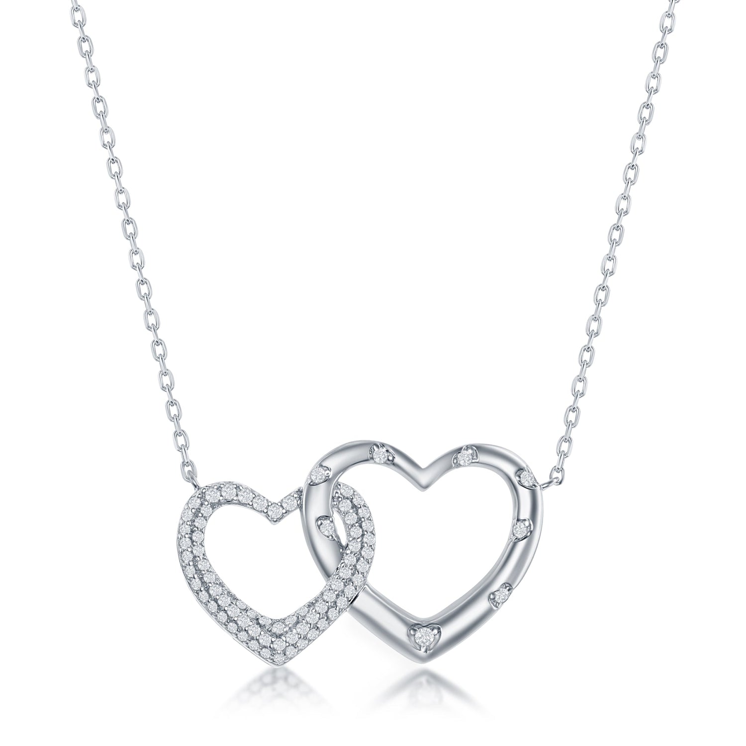 Sterling Silver Micro Pave CZ Interlocking Hearts Necklace