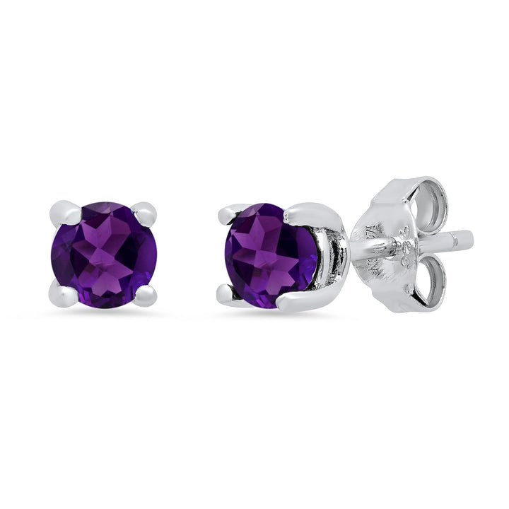 Crafted in 925 sterling silver, these stud earrings feature 5mm round genuine gemstones in a secure prong-set basket setting. Secured with butterfly push-back closures.